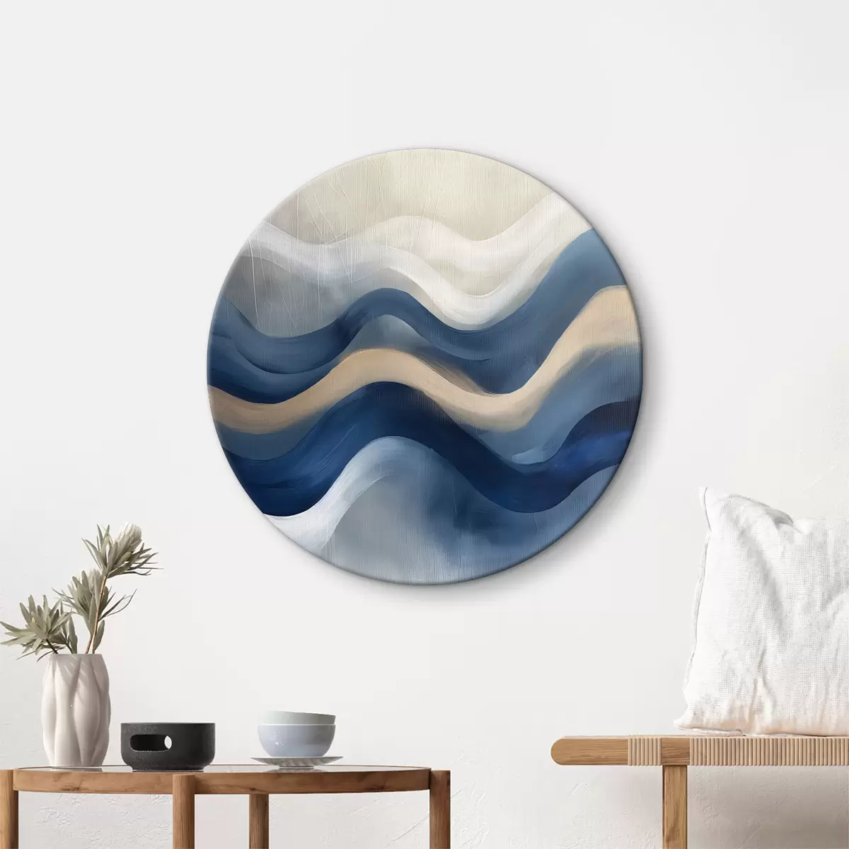 Runde Wandbilder blau - beige Linien r40242