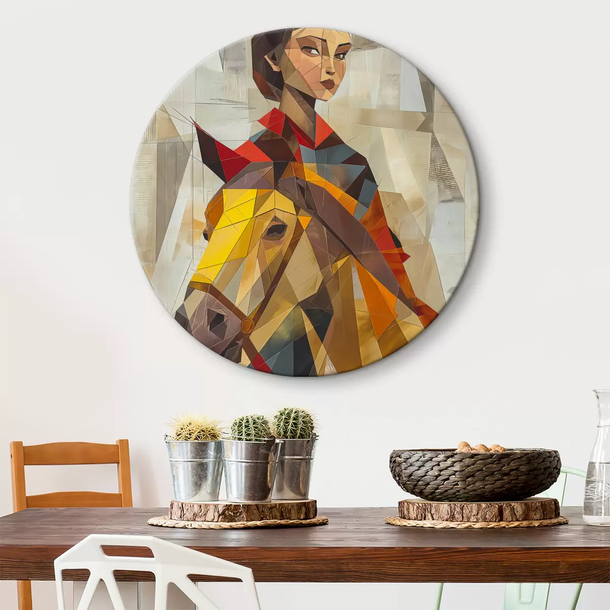 Runde Wandbilder Mädchen auf einem Pferd Kubismus r40253