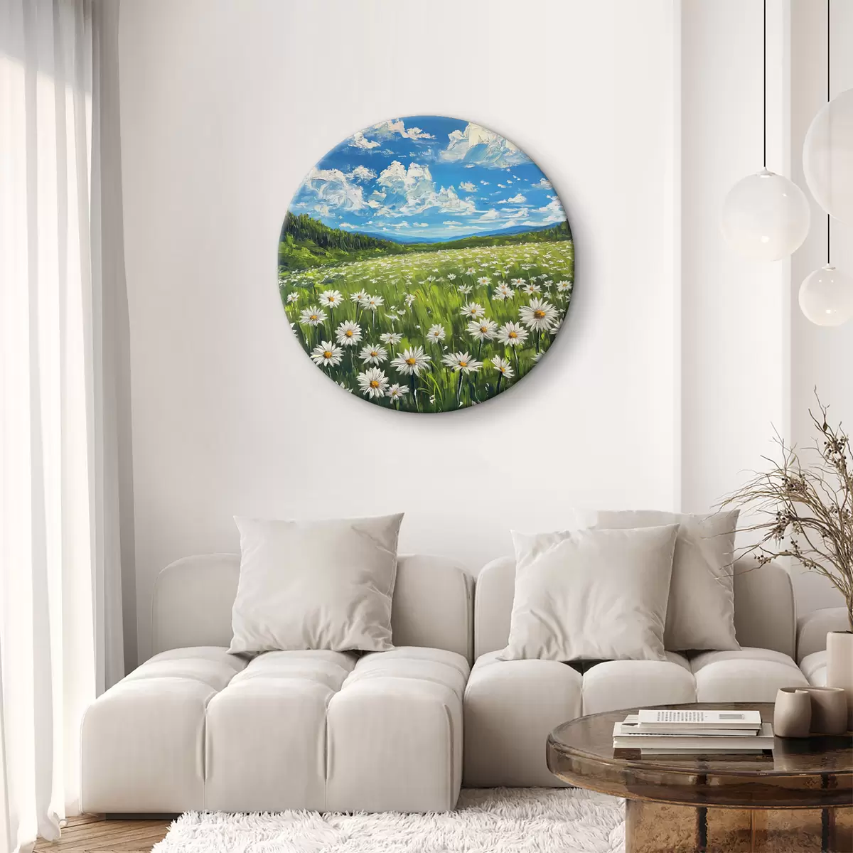 Runde Wandbilder Landschaft mit Gänseblümchen auf dem Feld r40255