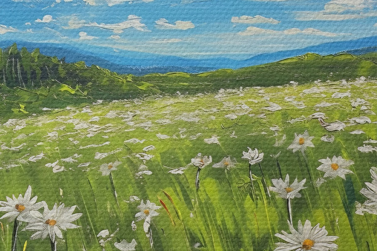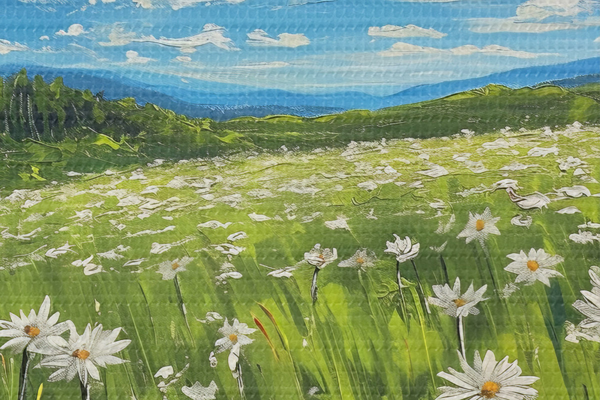 Runde Wandbilder Landschaft mit Gänseblümchen auf dem Feld Nr r40255