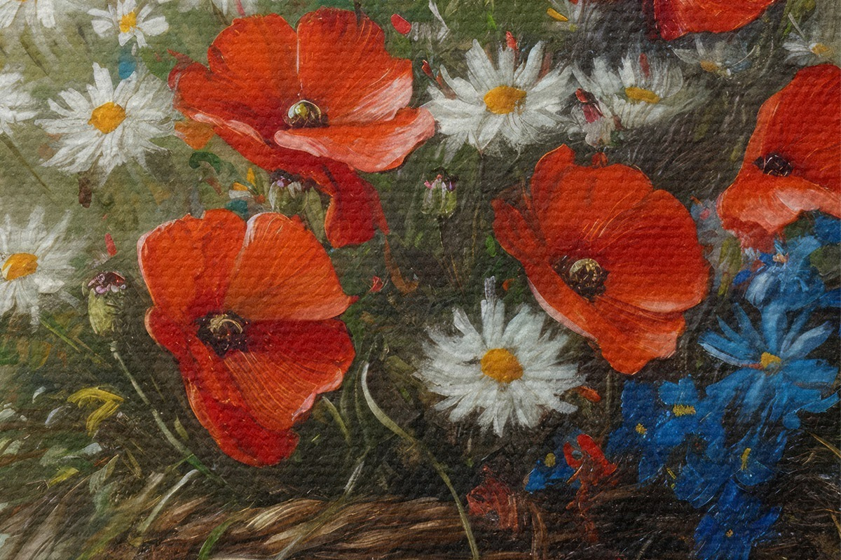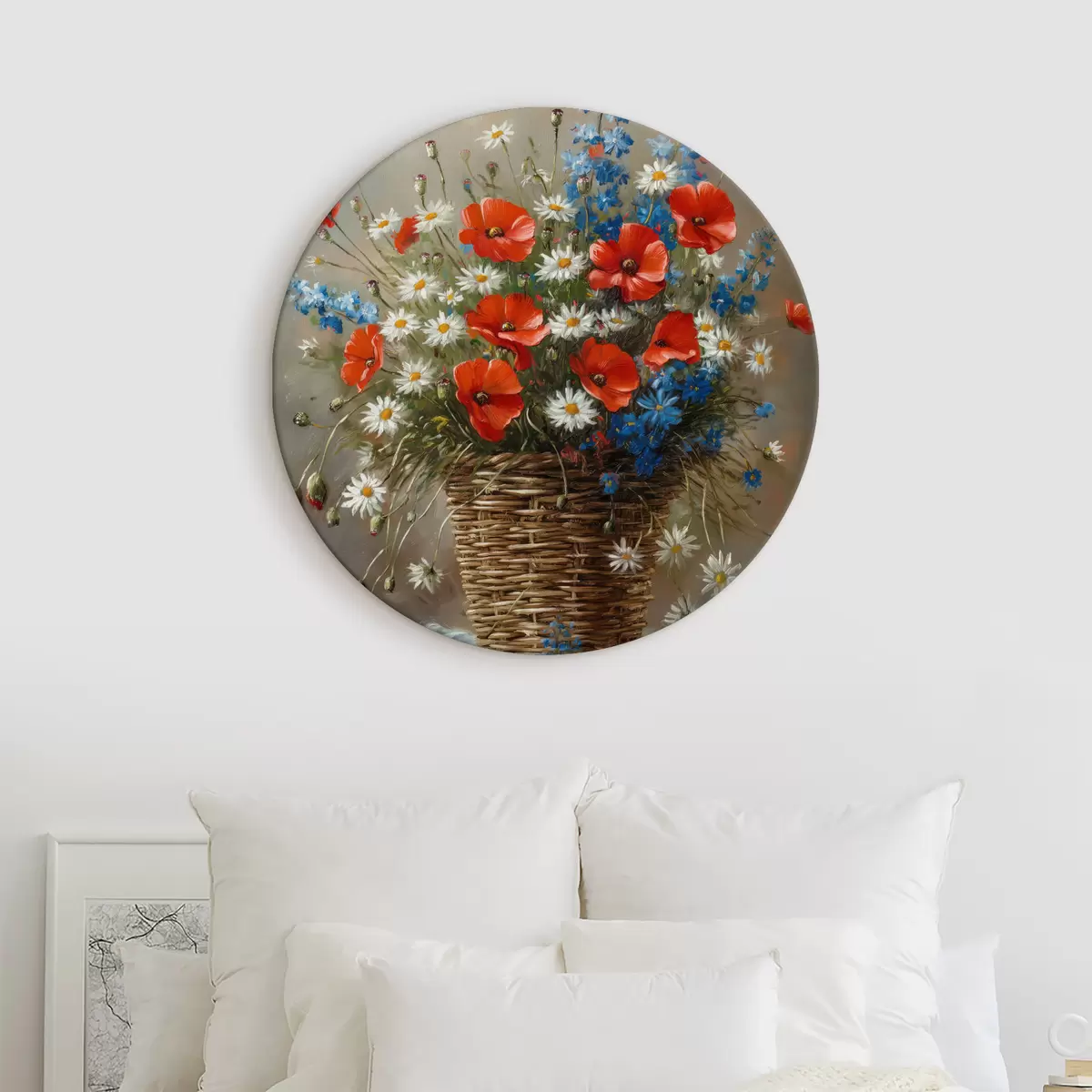 Runde Wandbilder ein Strauß Wildblumen in einem Korb Nr r40262