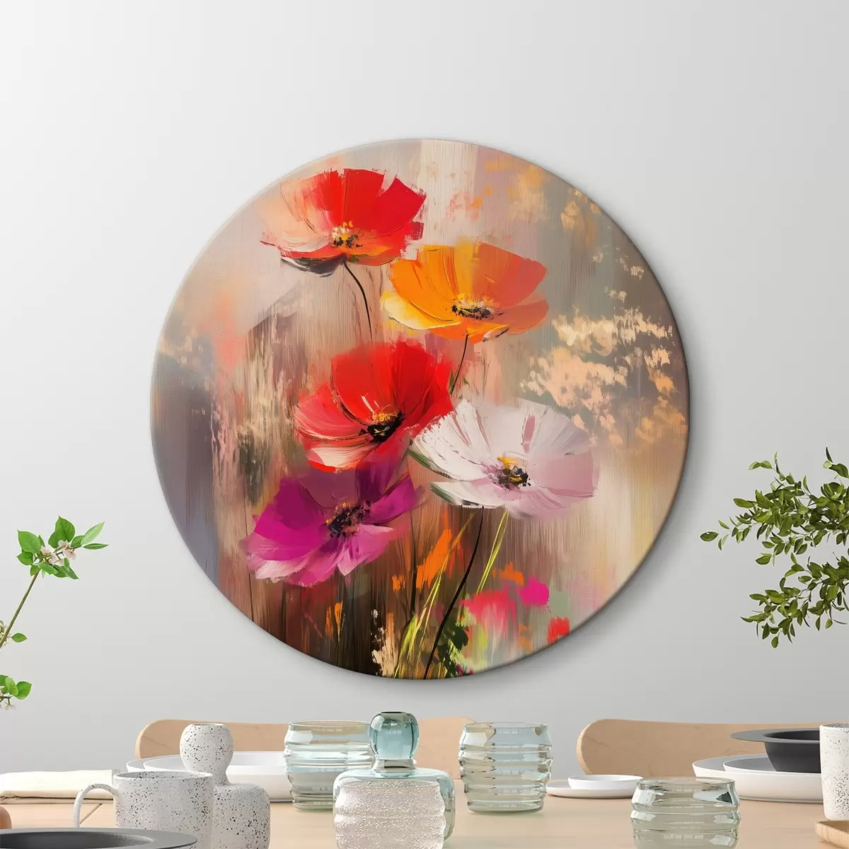 Runde Wandbilder Abstrakte helle Blumen mit Pinselstrichen Nr r40283