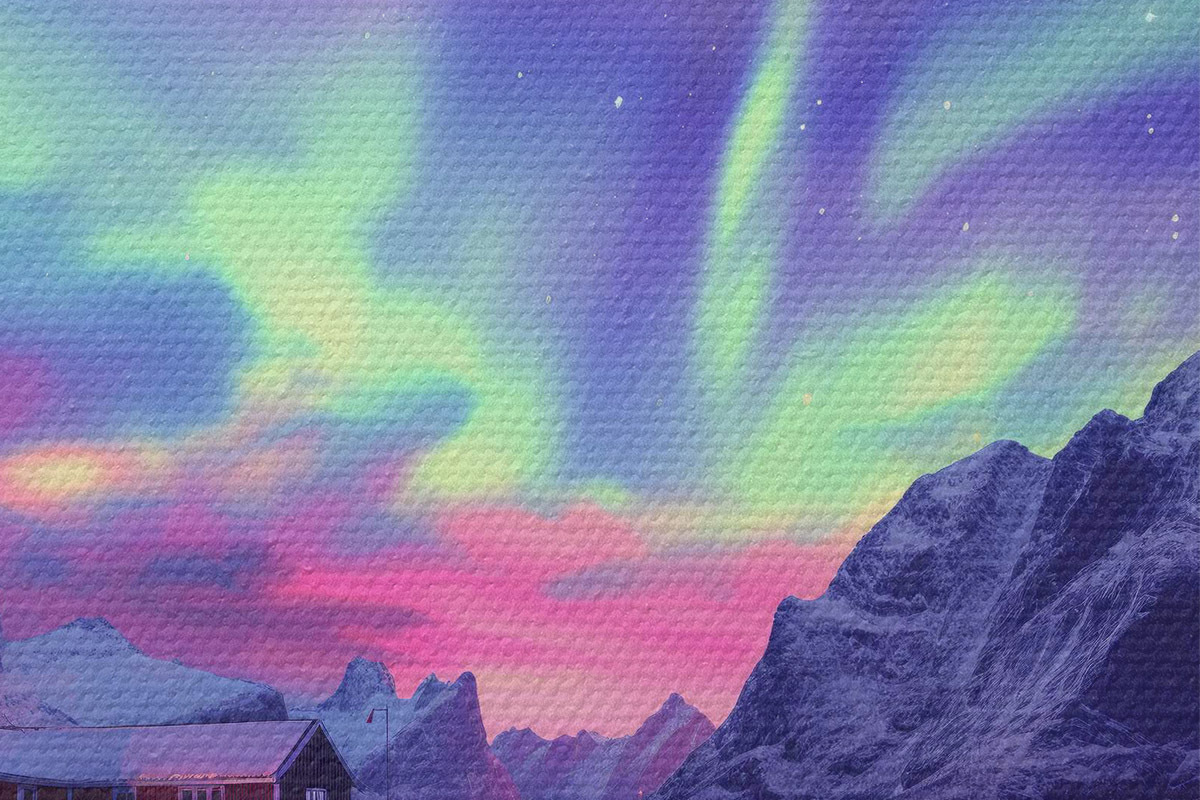 Runde Wandbilder Nordlicht auf den Lofoten, Norwegen, Natur, Winter r40298