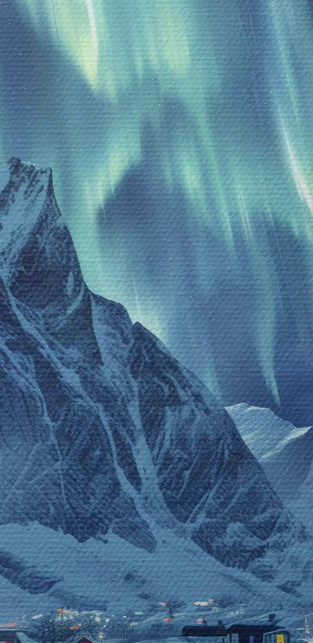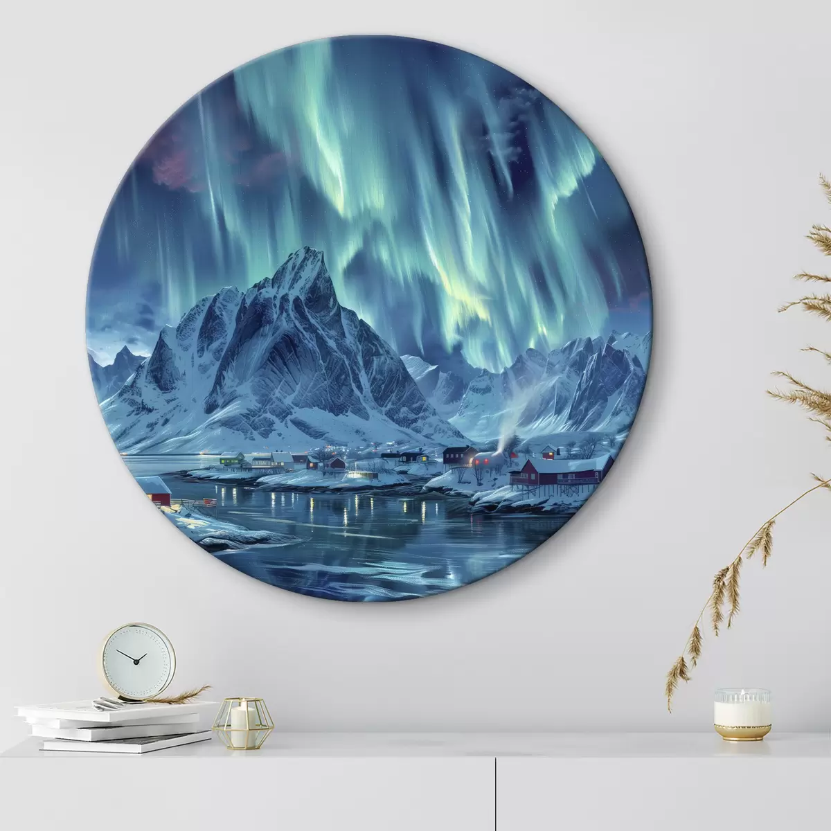 Runde Wandbilder Magische Nordlichter, Winterdorf in Norwegen Nr r40301