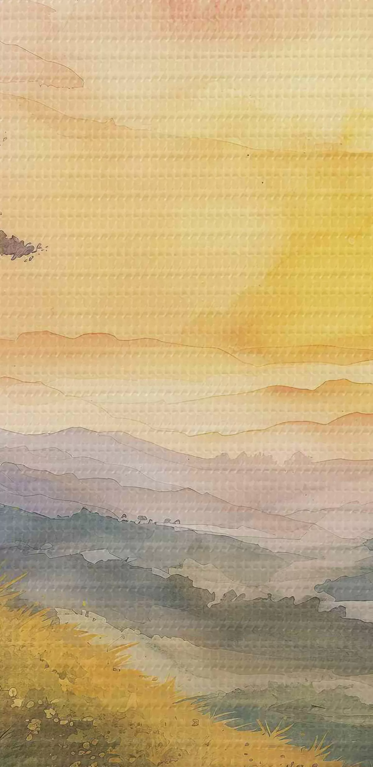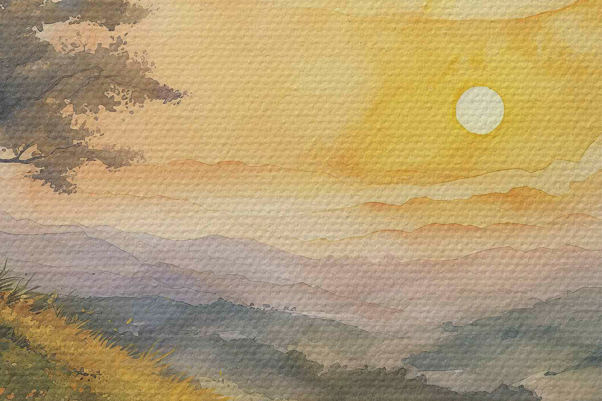 Runde Wandbilder Wiese mit Hügeln und Bäumen, Blumen, Aquarell r40303