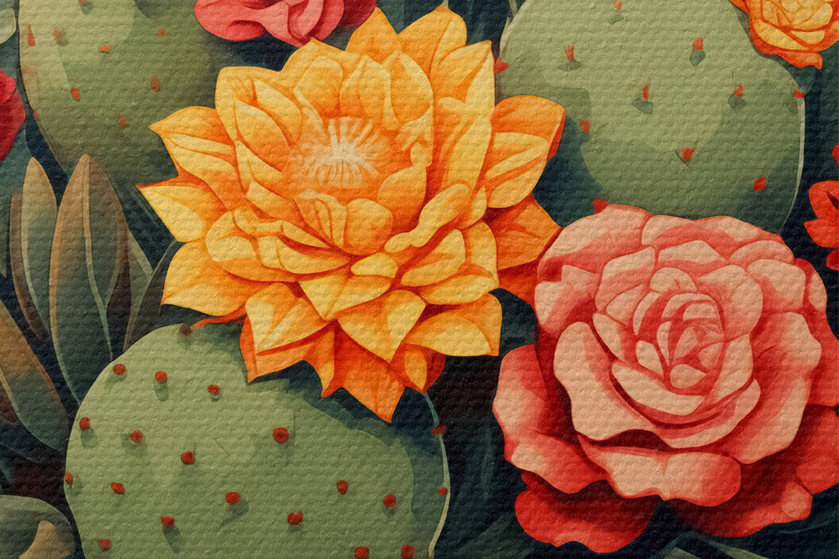 Runde Wandbilder Blühende Kakteen im Topf, grün, rot, gelb, orange Farbe r40316