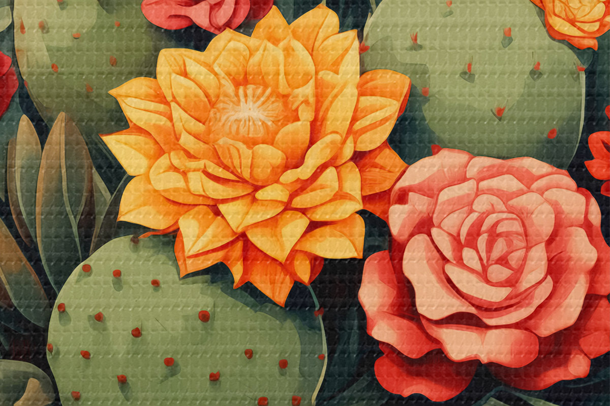 Runde Wandbilder Blühende Kakteen im Topf, grün, rot, gelb, orange Farbe Nr r40316