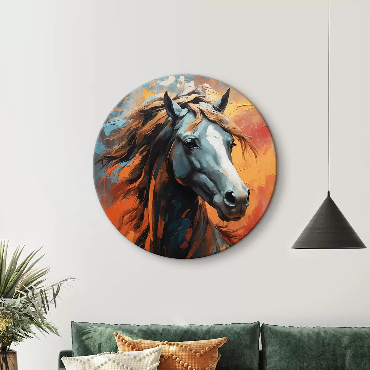 Runde Wandbilder Pferd auf abstraktem Hintergrund r40324