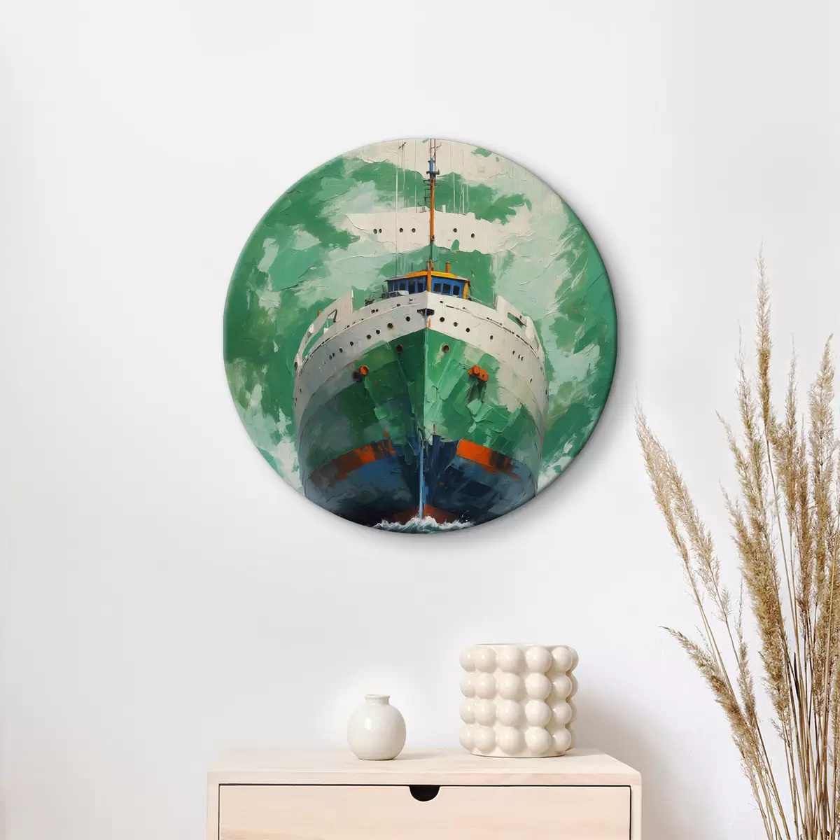 Runde Wandbilder Schiff auf grünem Hintergrund Nr r40326