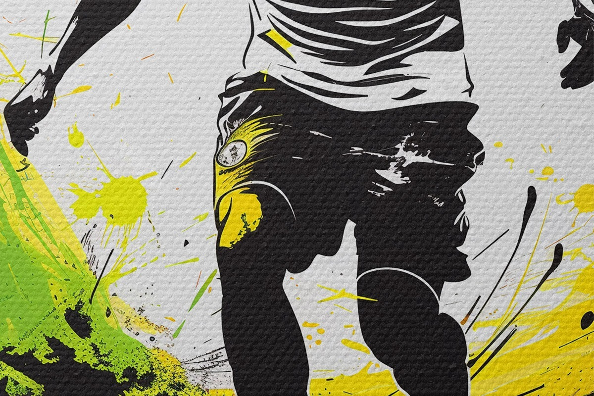 Runde Wandbilder Football-Spieler auf einem Hintergrund aus bunten Spritzern r40381