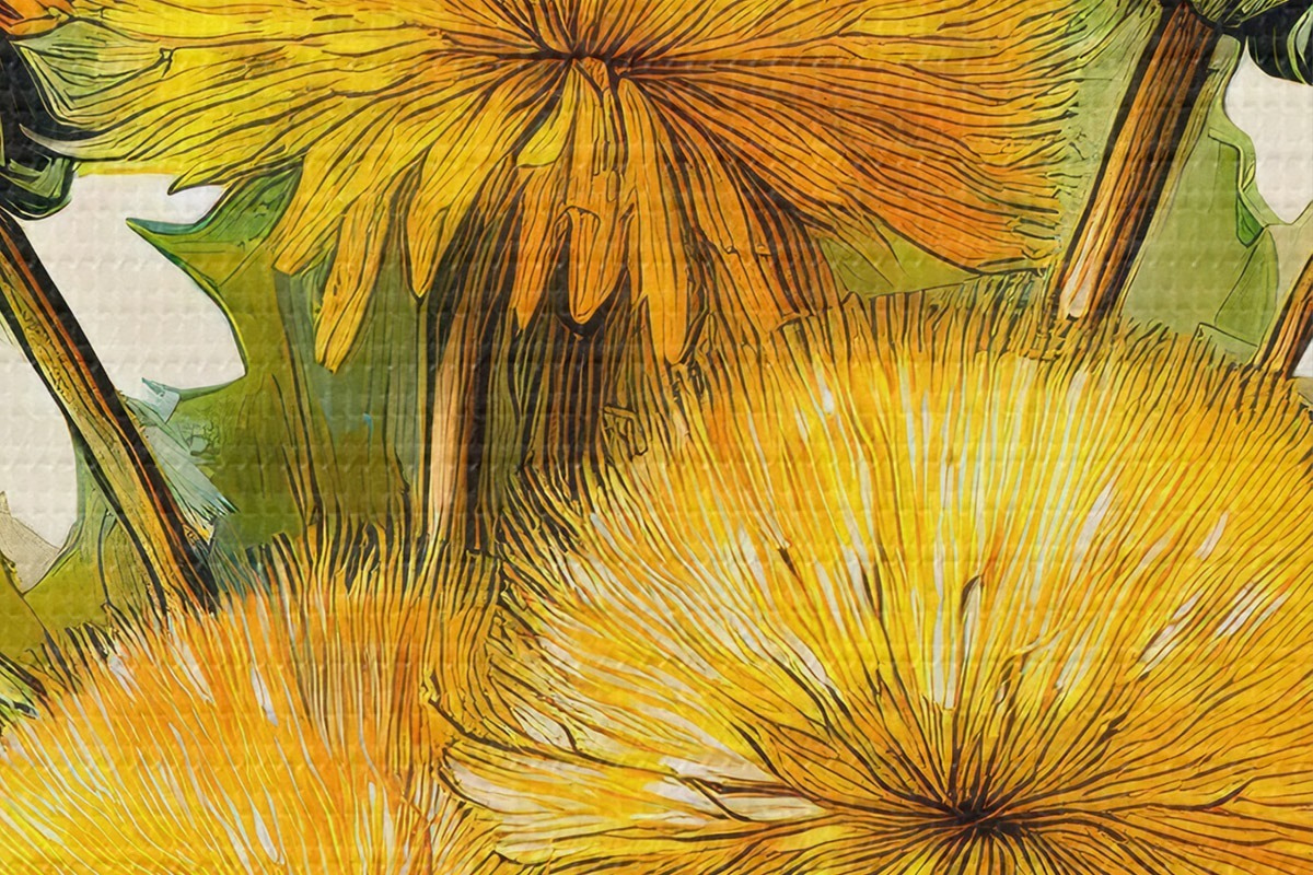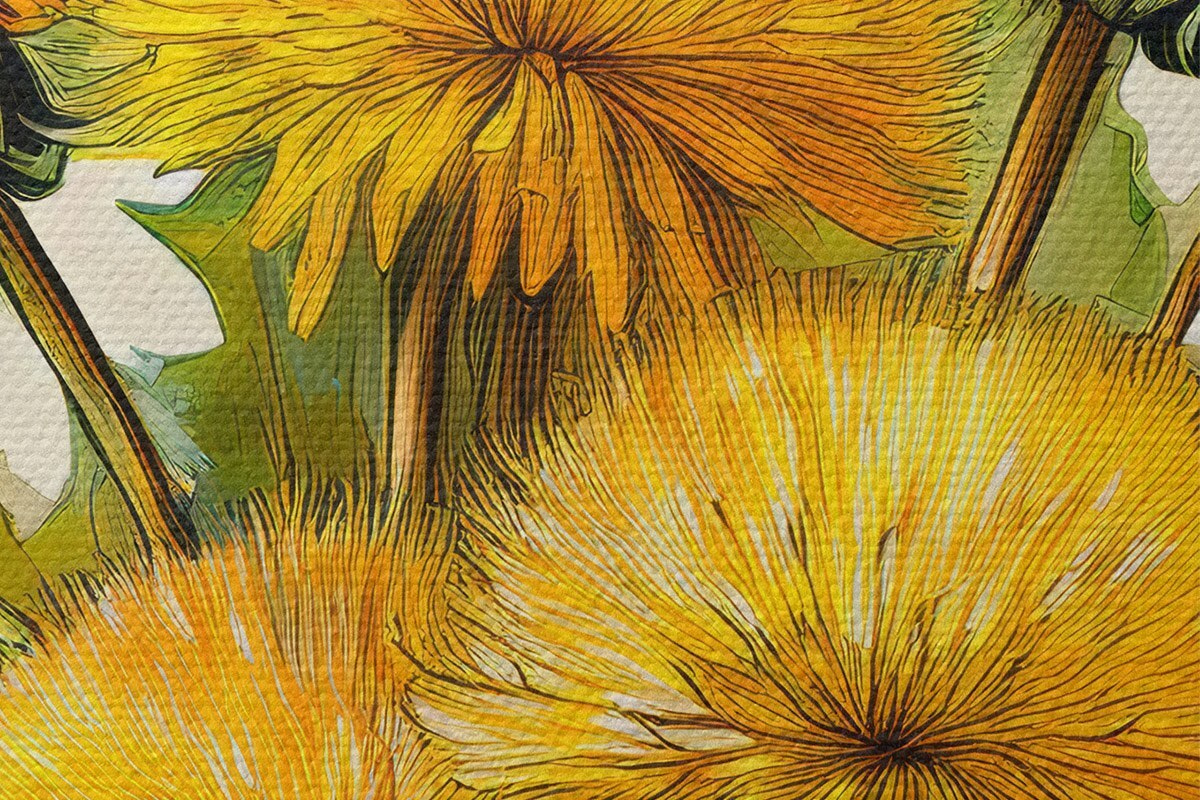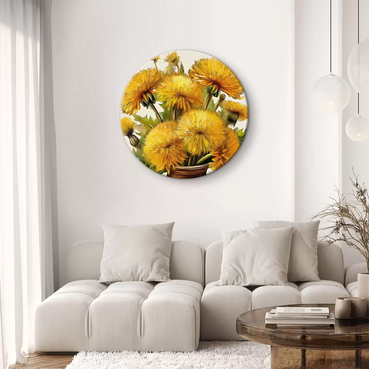 Runde Wandbilder Löwenzahn, Löwenzahnstrauß in einer Vase, gelber Löwenzahn r40418