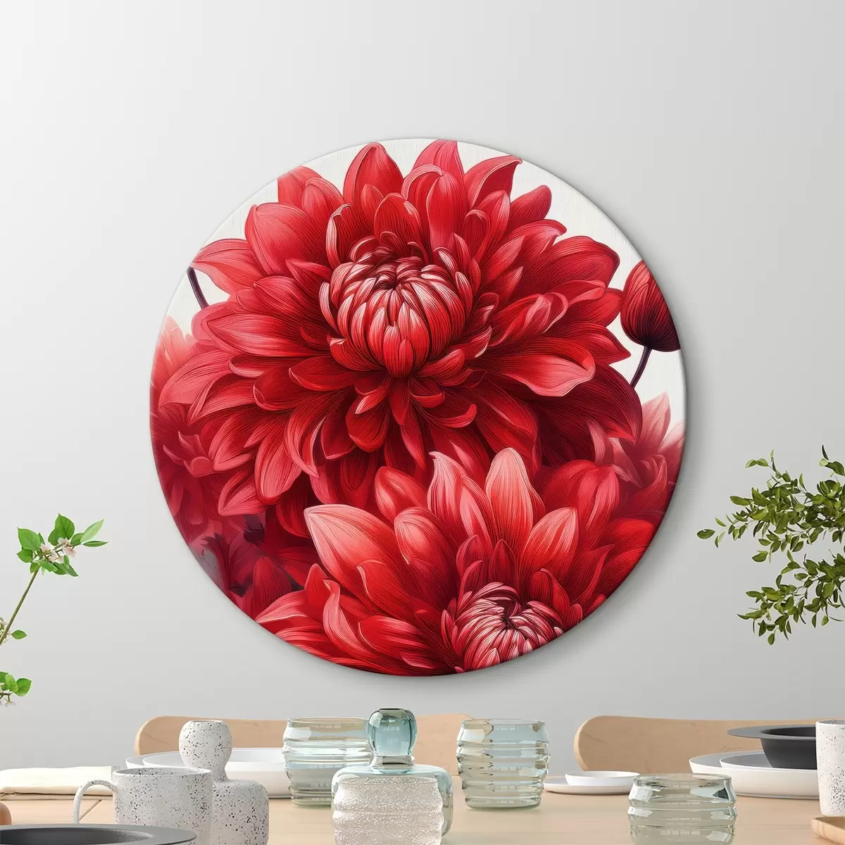 Runde Wandbilder rote Chrysanthemen Nahaufnahme r40422