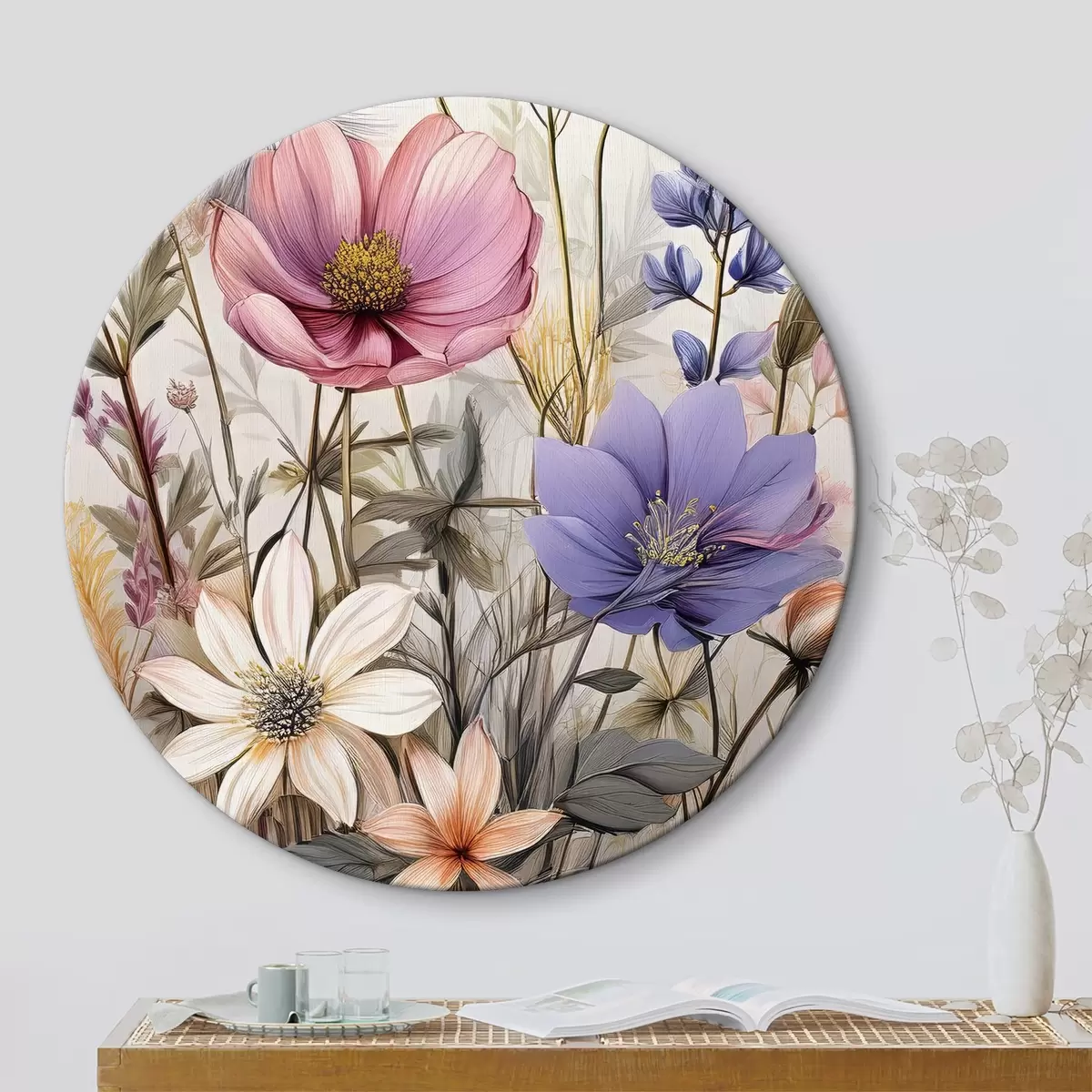 Runde Wandbilder Wildblumen, Blumenarrangement Nr r40423