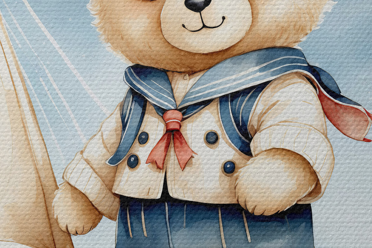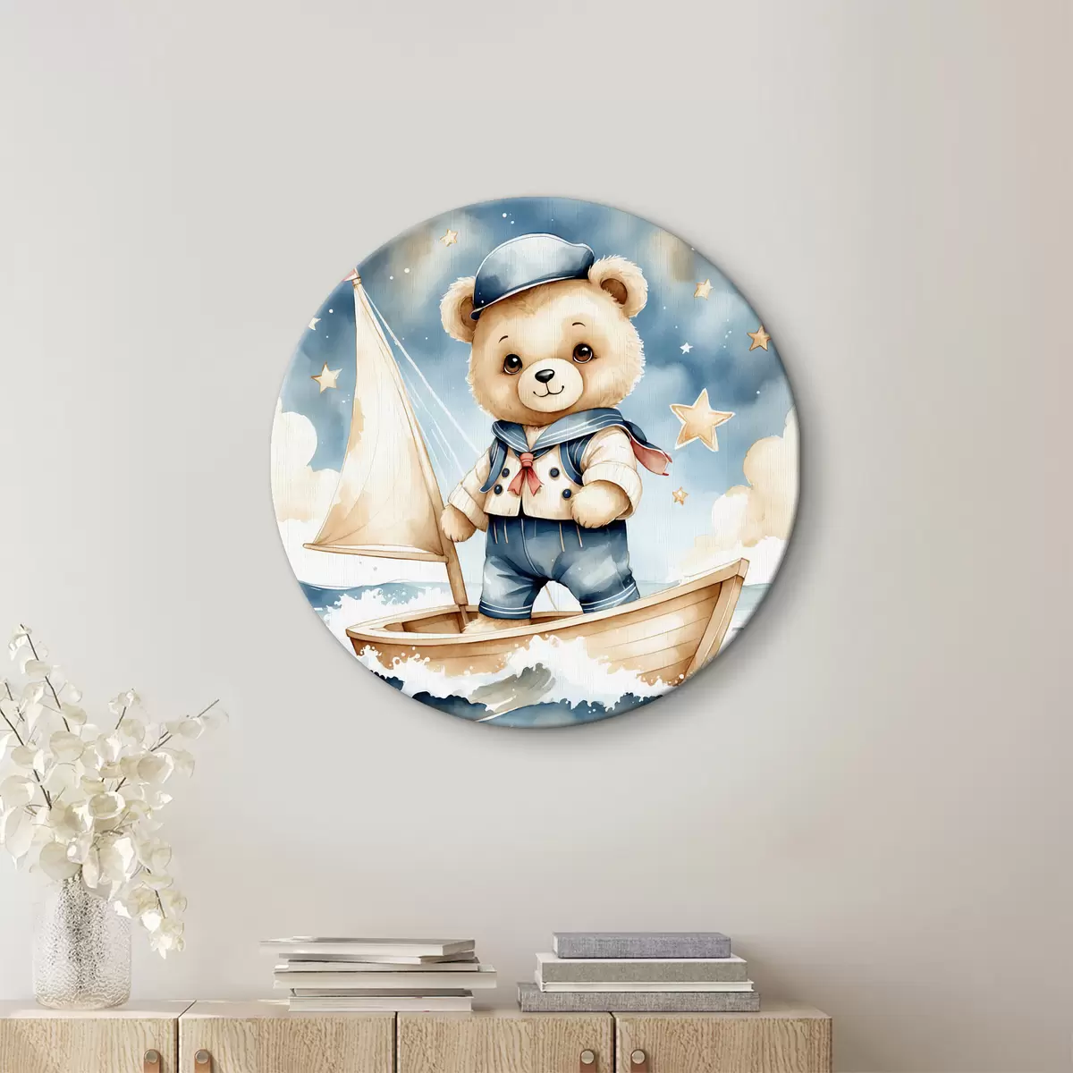 Runde Wandbilder Niedlicher Aquarellbär in einem Boot mit Sternen am Himmel Nr r40429