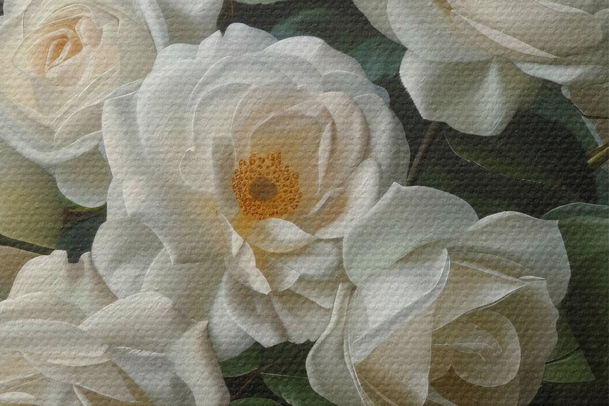 Drei Materialtypen stehen zur Verfügung: Economic Canvas - ein dichtes und haltbares Material für den Digitaldruck, identisch mit Malerleinwand, wasserfeste Oberfläche, realistische Wiedergabe von Details, mittelkörniges Material. Premium Canvas - die Textur ähnelt der einer Malerleinwand (verwobene kleine Fäden). Weiche, detaillierte Wiedergabe des Bildes auf einer matten Oberfläche. Eco-Premium - hochwertiges Gewebe aus 100% Baumwolle. Dank der natürlichen Baumwollfasern ist das Material langlebig und verschleißfest. Hervorragende Farbwiedergabe und Detailtreue.