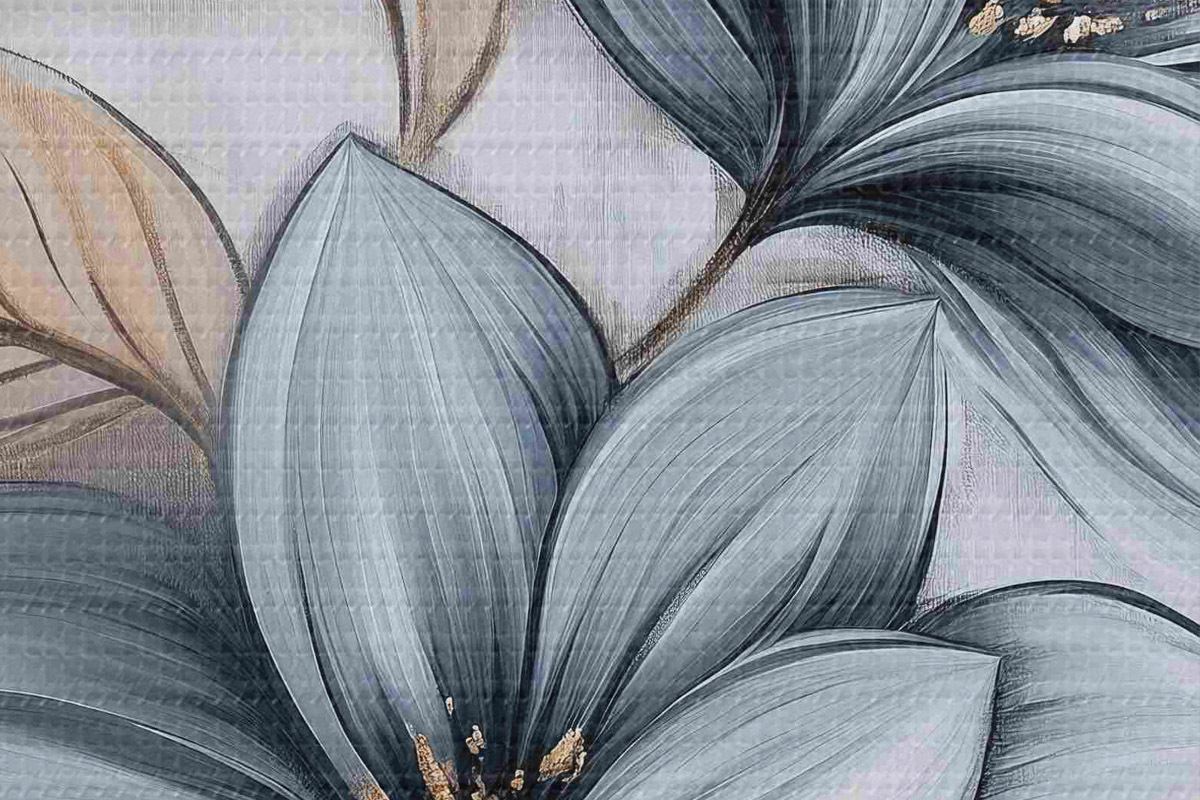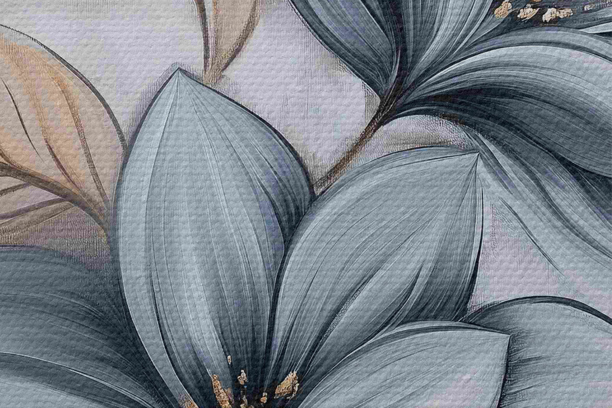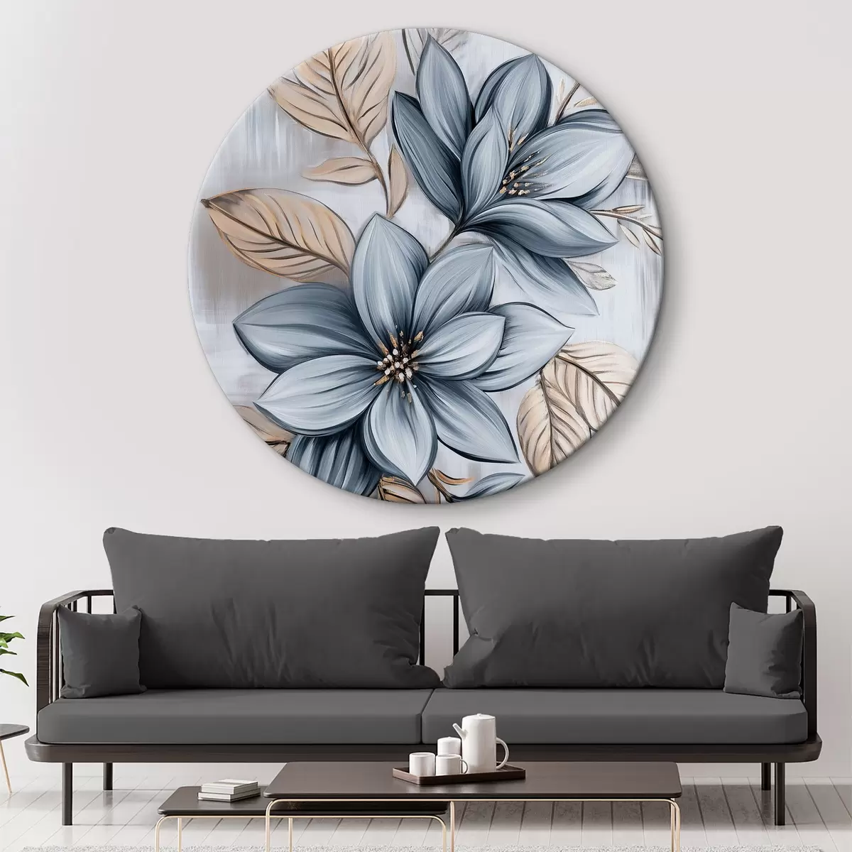 Runde Wandbilder Blaue Blumen auf grauem Hintergrund r40453