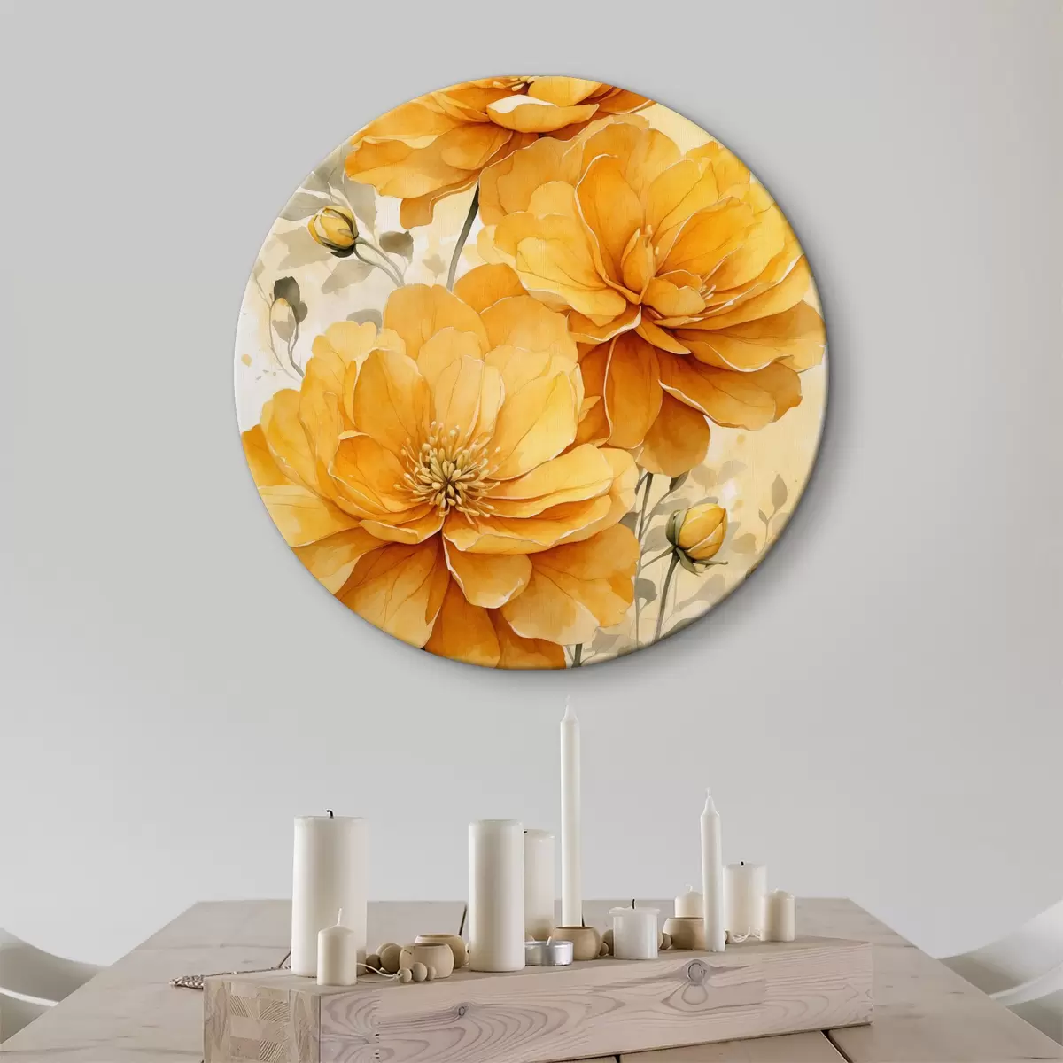 Runde Wandbilder Gelbe Blumen auf unscharfem Hintergrund Nr r40482