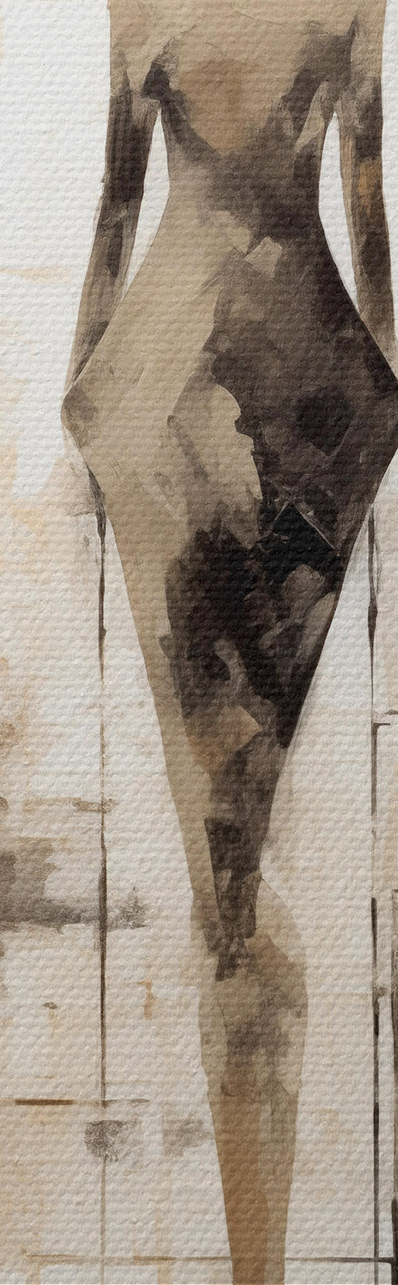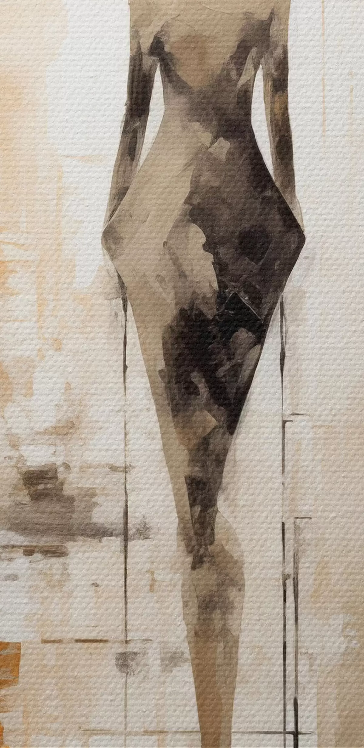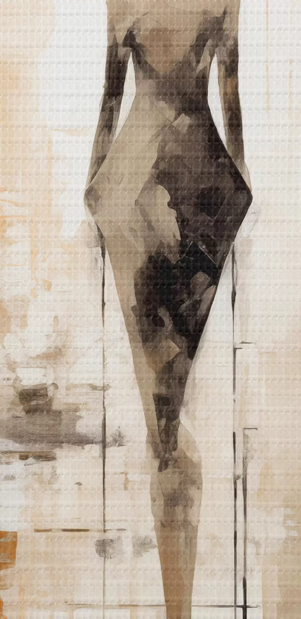 Runde Wandbilder Abstrakte Silhouette einer Frau, Nachahmung von Abschürfungen und Pinselstrichen Nr r40485