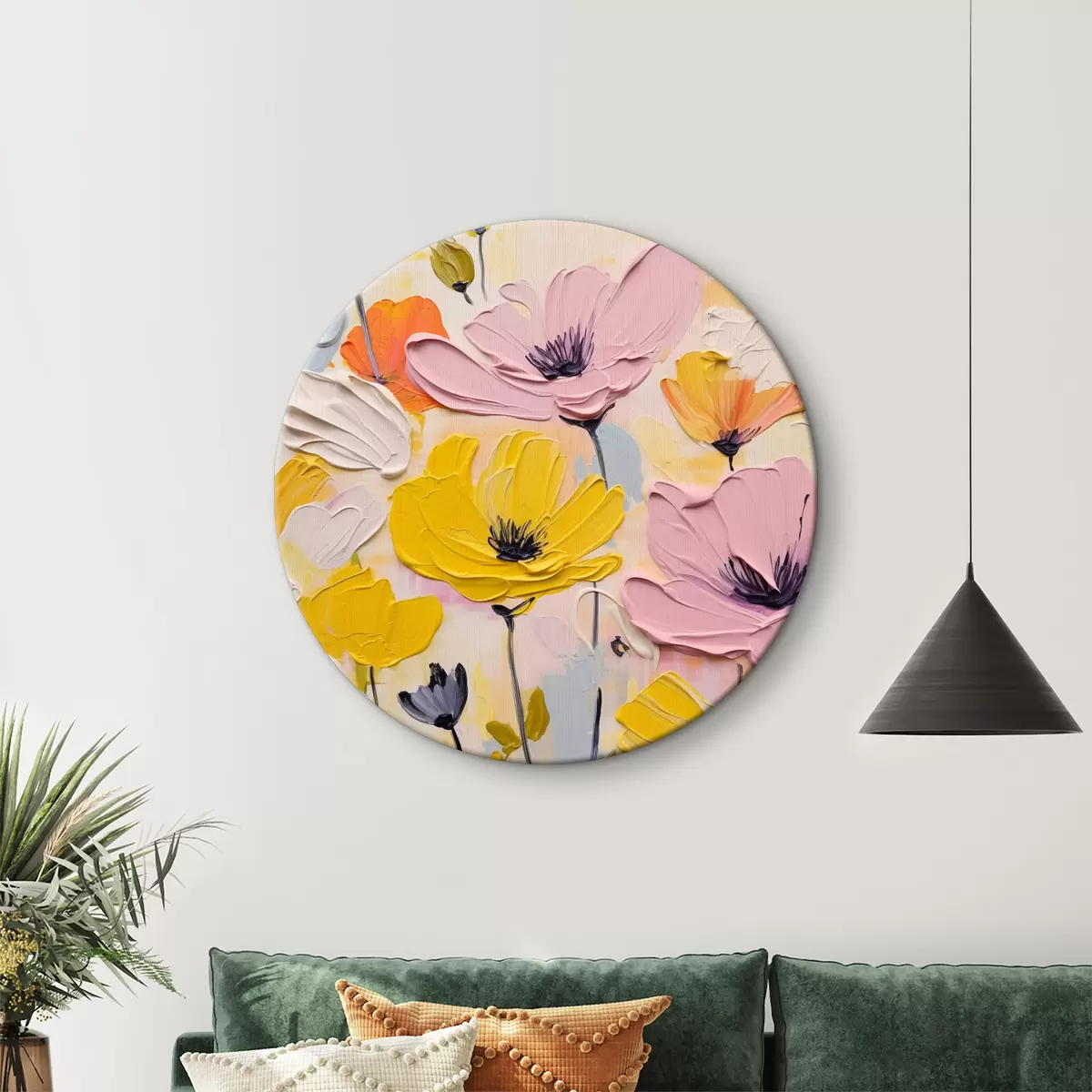 Runde Wandbilder Wildblumen in Pastellfarben, nachgeahmte Pinselstriche, Gelb, Lila, Beige, Blau Nr r40488