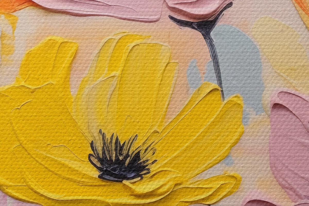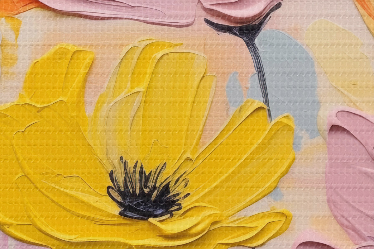 Runde Wandbilder Wildblumen in Pastellfarben, nachgeahmte Pinselstriche, Gelb, Lila, Beige, Blau r40488