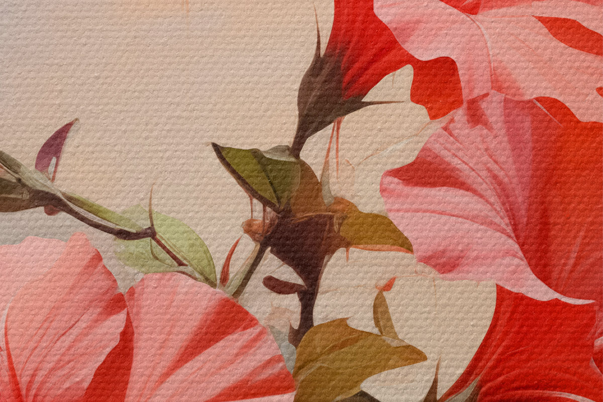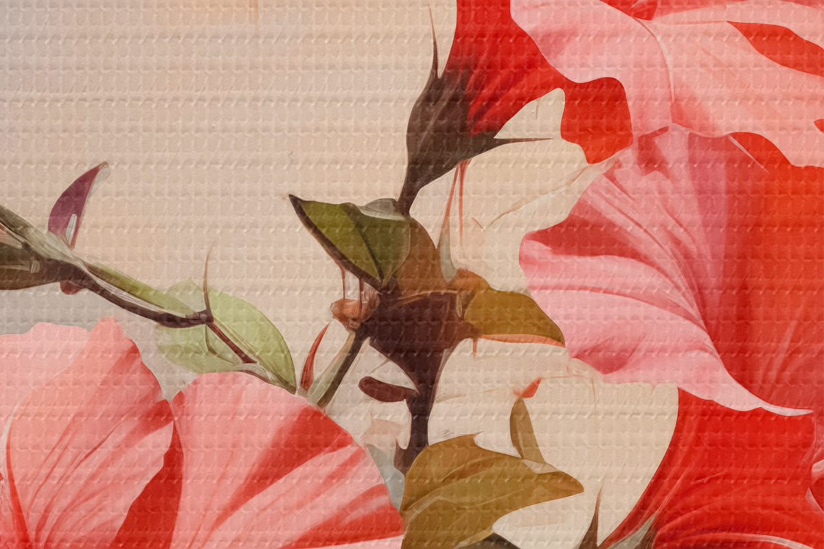 Runde Wandbilder Zweig der blühenden Hibiskus, rot, rosa, grau r40490
