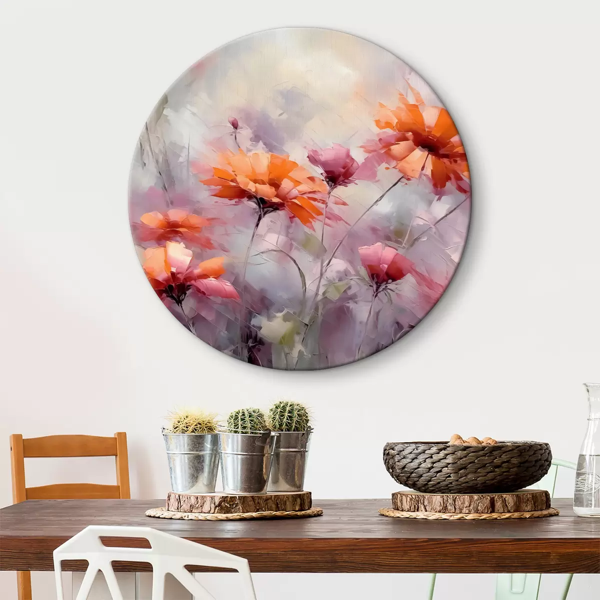 Runde Wandbilder Abstrakte Blumen, Nachahmung von Pinselstrichen, rot, grau, lila, orange r40528