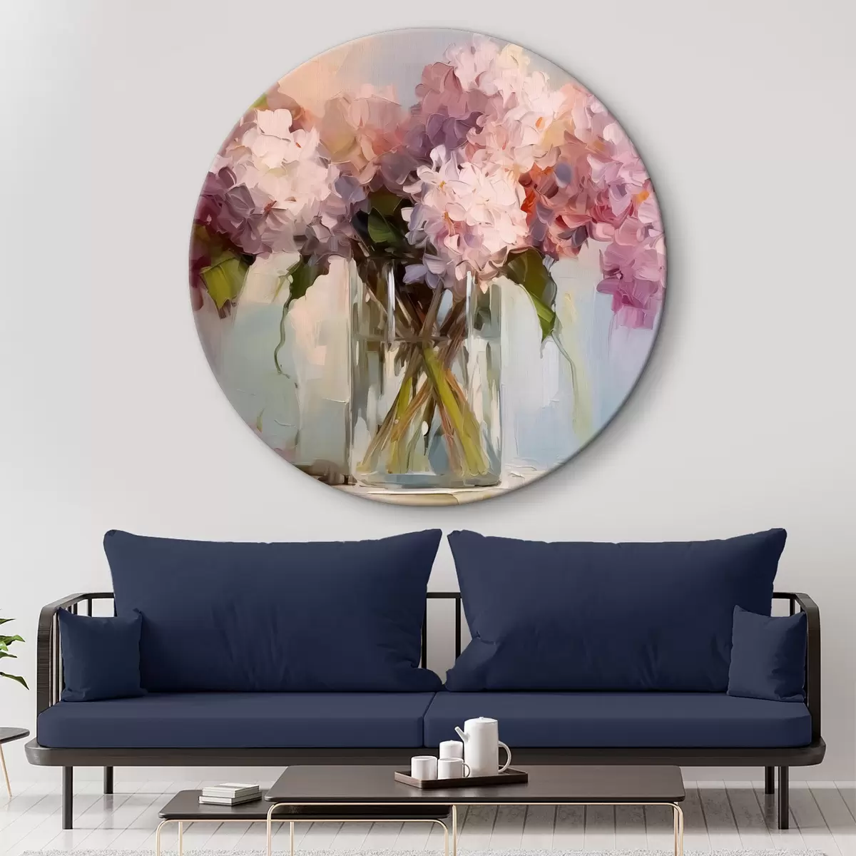 Runde Wandbilder Ein Strauß Hyazinthen in einer großen Glasvase, Pastellfarben Nr r40529