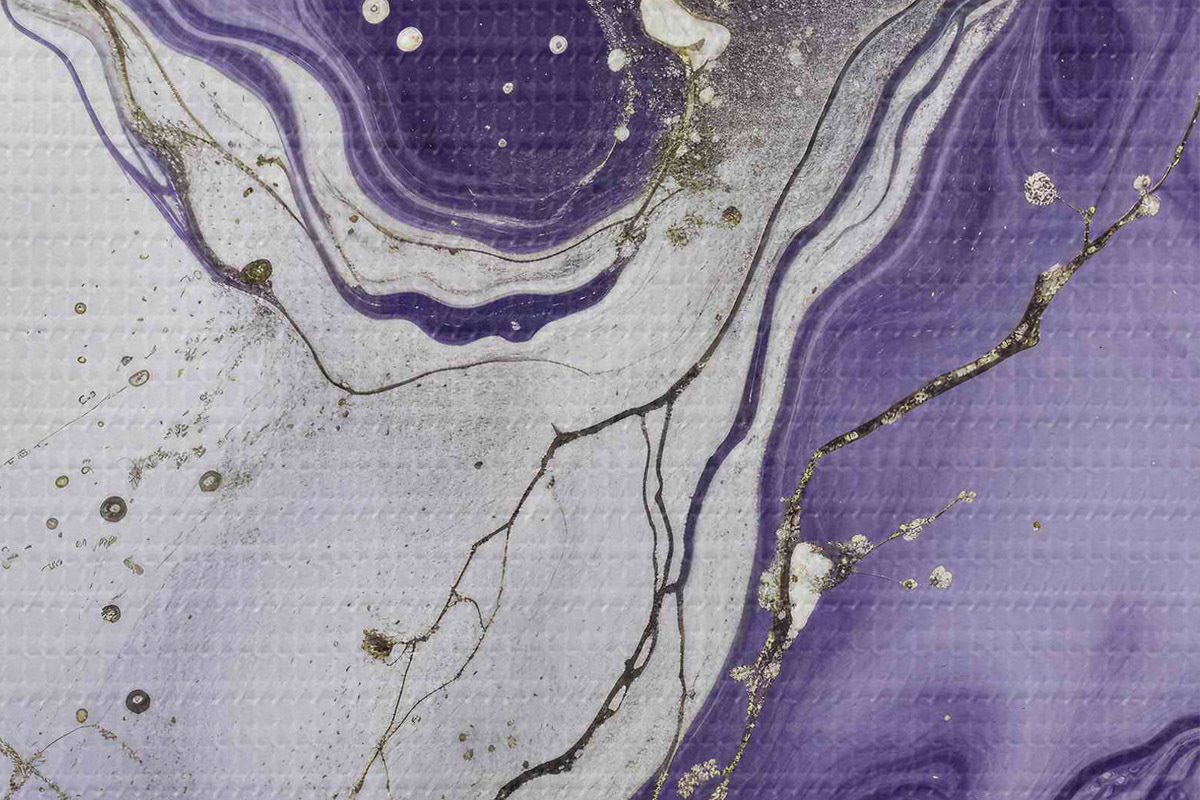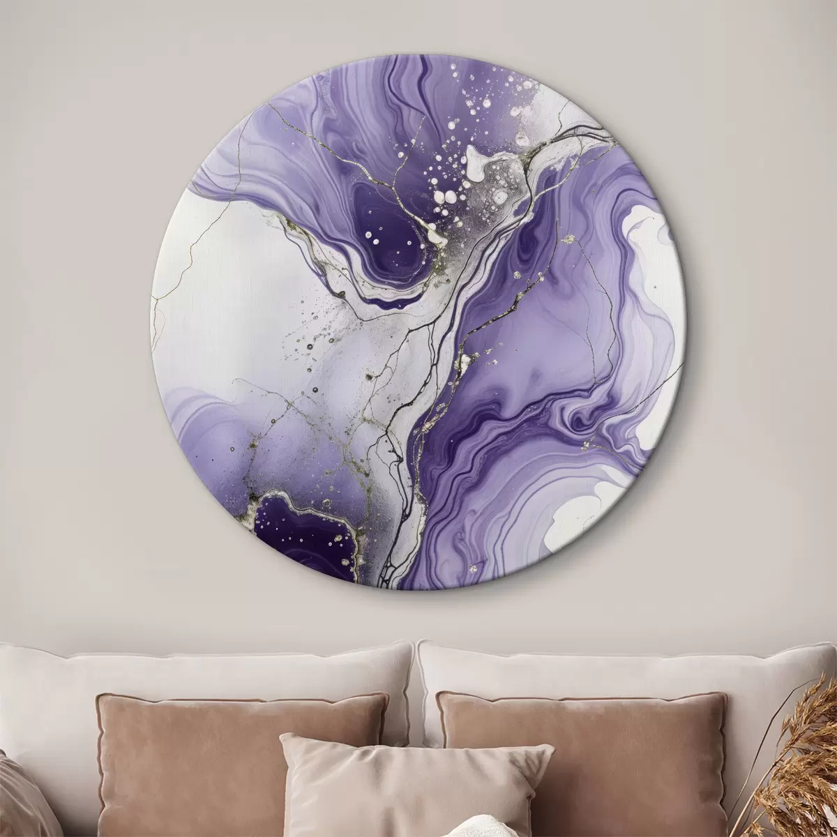 Runde Wandbilder Abstrakte, fließende Kunstkomposition, gedruckt mit wirbelnder lila, weißer und grauer Tinte Nr r40566