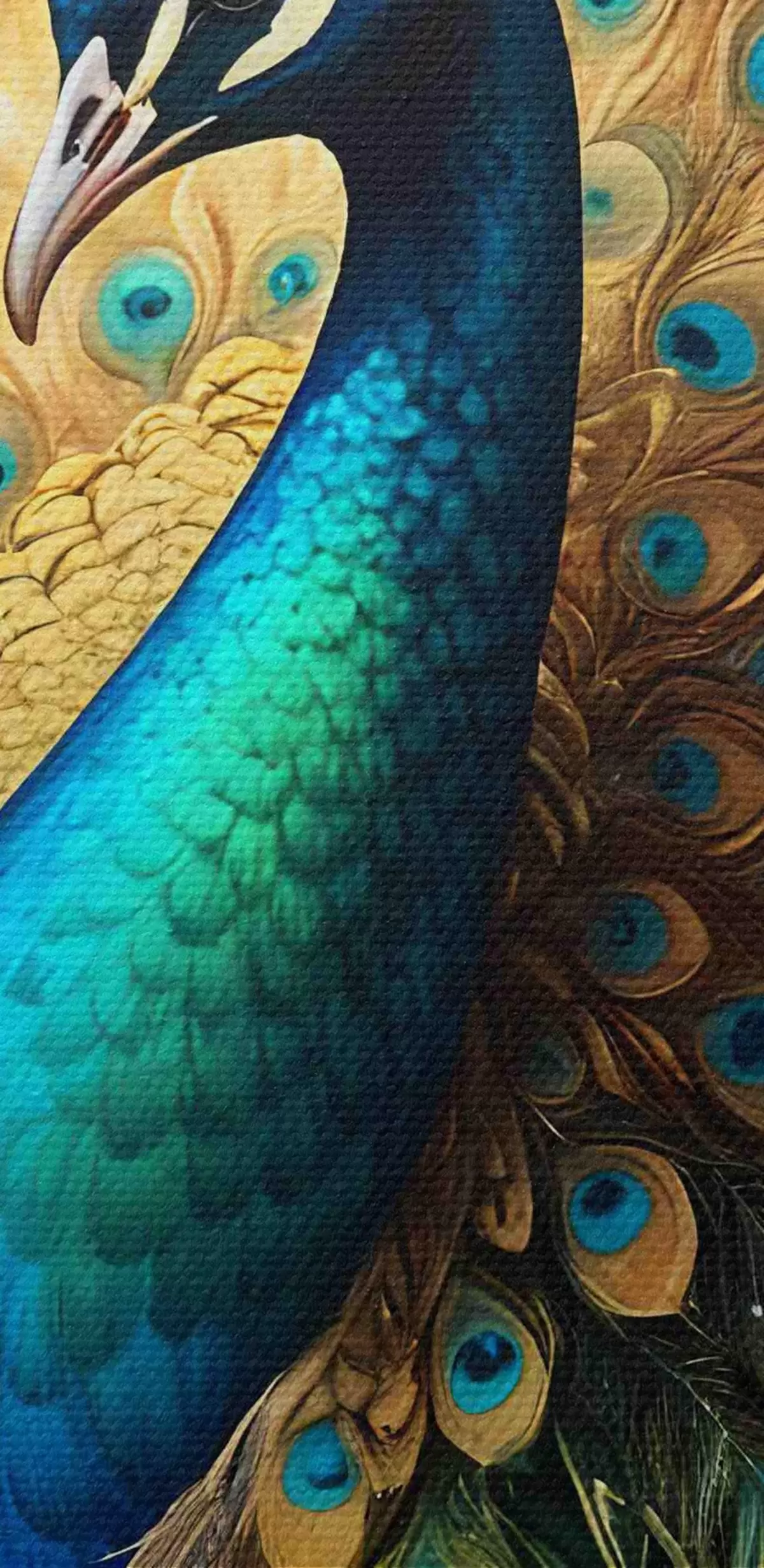 Runde Wandbilder Ein lebhafter Pfau mit voll entblößtem Gefieder, das ein atemberaubendes blaues und grünes Gefieder zeigt Nr r40571