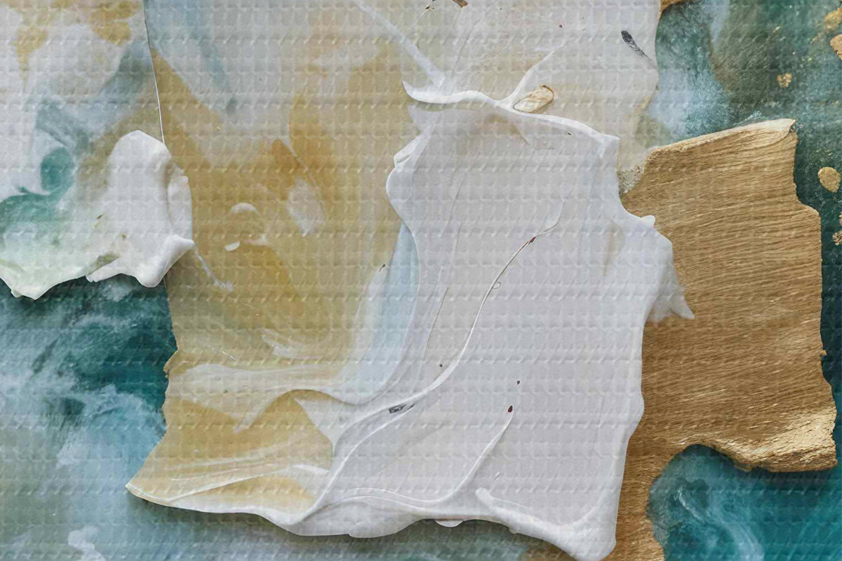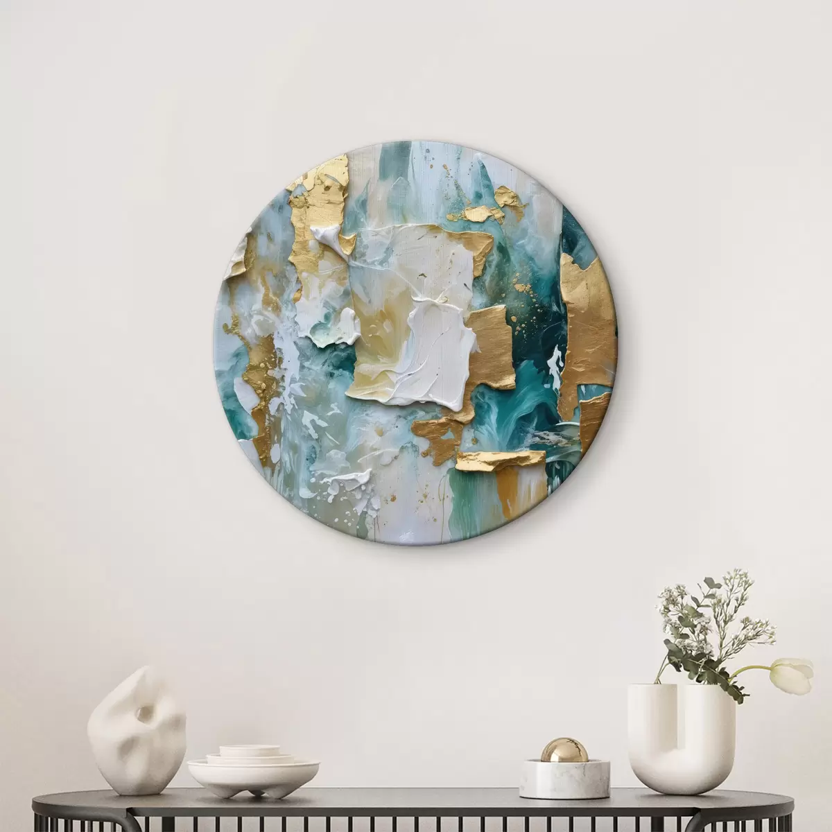 Runde Wandbilder Abblätternde Farbe mit Schichten aus Weiß, Blau und Gelb ergibt einen abstrakten, strukturierten Druck Nr r40577