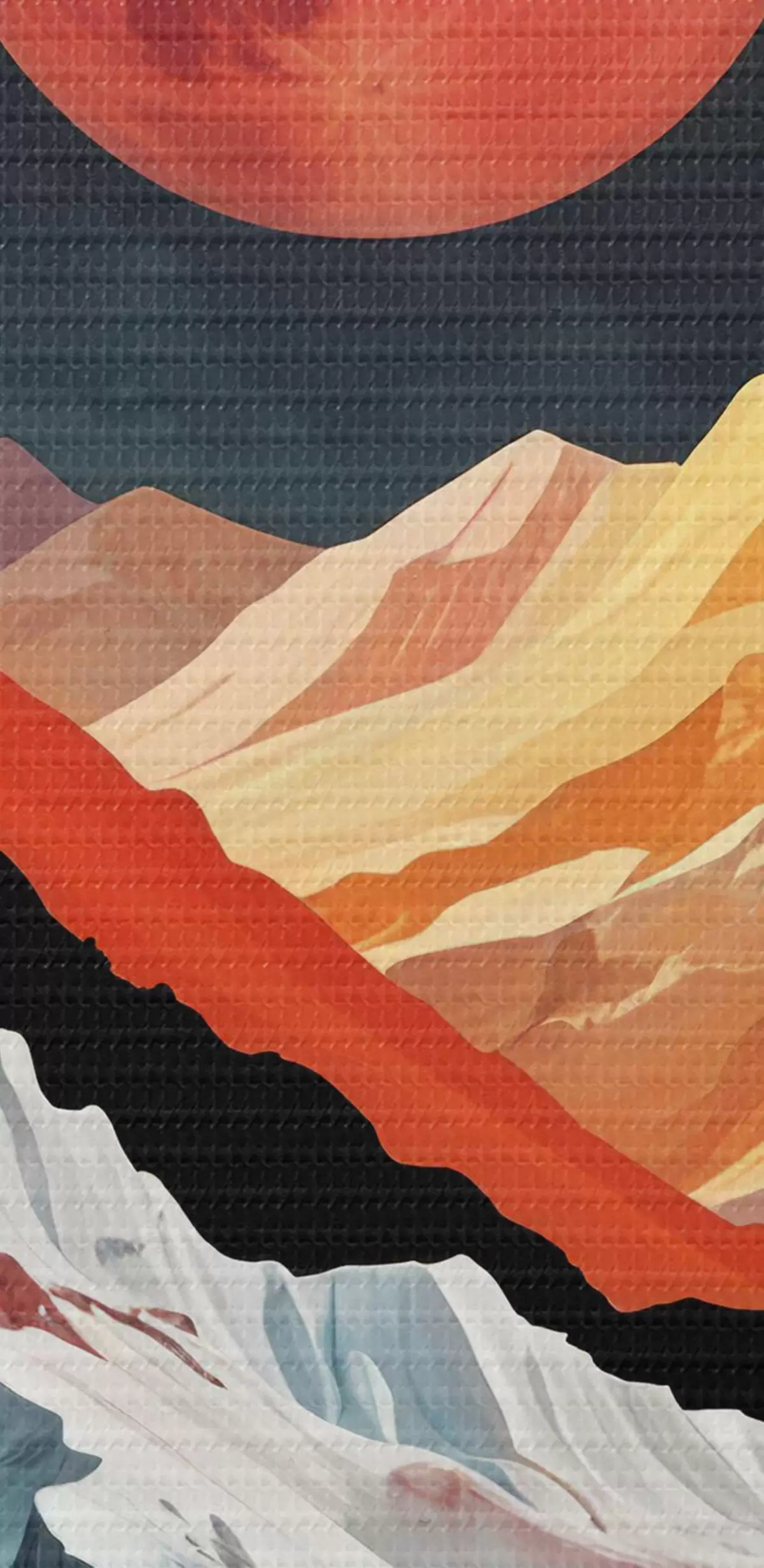 Runde Wandbilder Surreale Landschaft mit hohen zerklüfteten Bergen unter einem großen glühenden roten Mond in einem dunklen bewölkten Himmel r40589