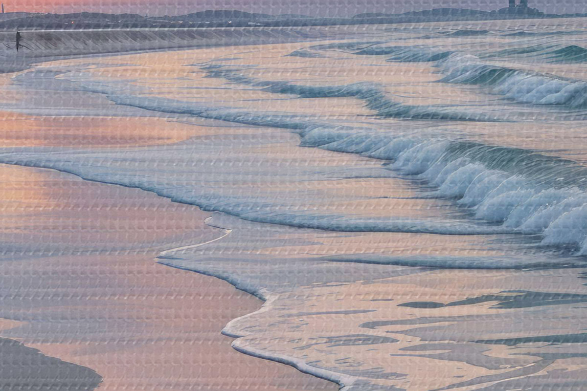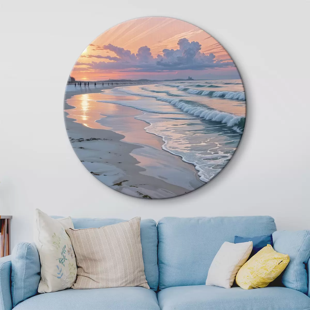 Runde Wandbilder Ruhige Szene am Strand bei Sonnenuntergang, mit sanften Wellen, die an den Sandstrand schlagen Nr r40606