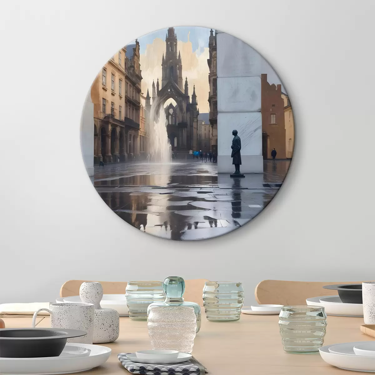 Runde Wandbilder Im Hintergrund steht eine mittelalterliche Kathedrale mit gotischer Architektur, deren Türme in den Himmel ragen r40611