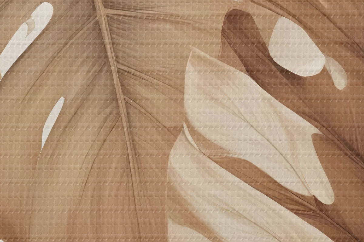 Runde Wandbilder Ein Druck von tropischen Blättern mit natürlicher, organischer Textur in Braun- und Beigetönen Nr r40613