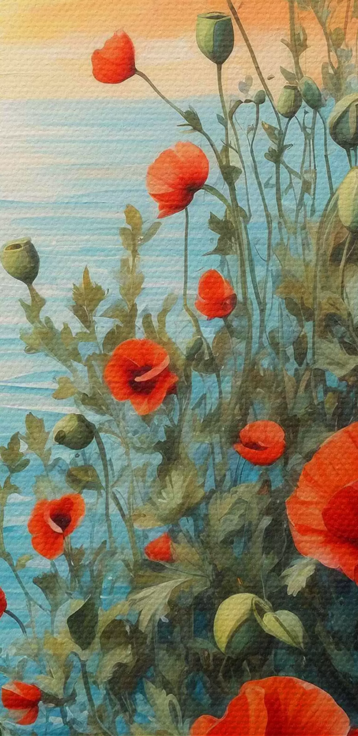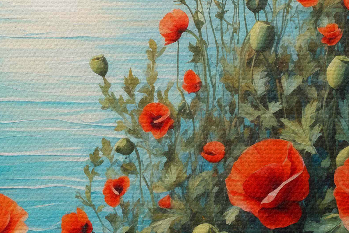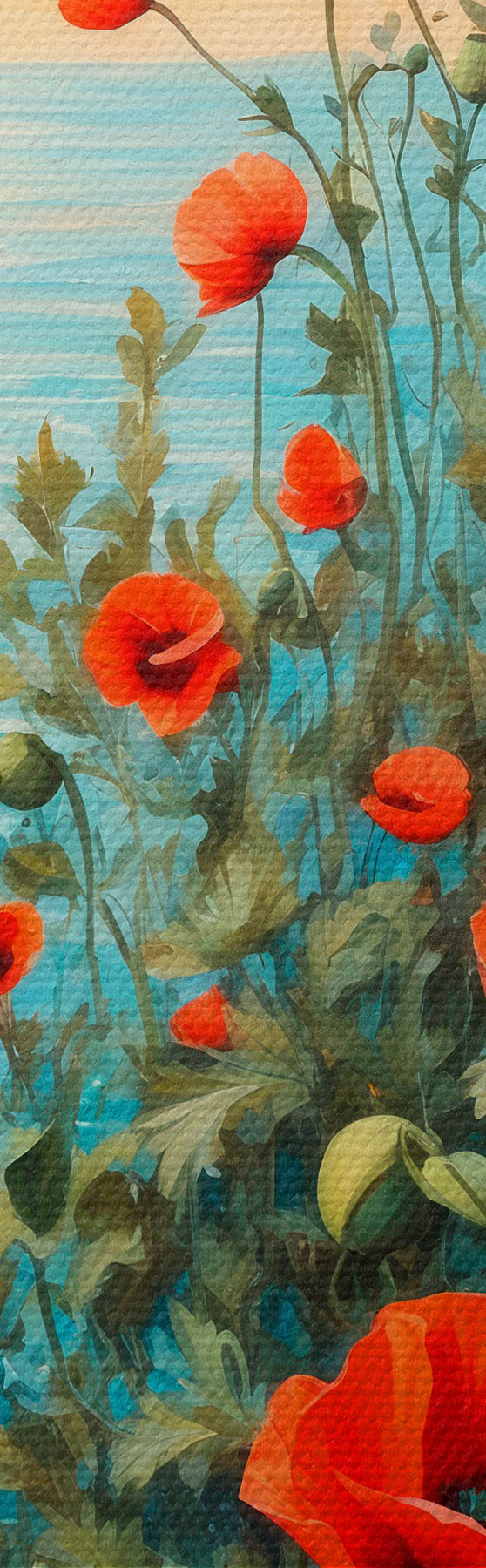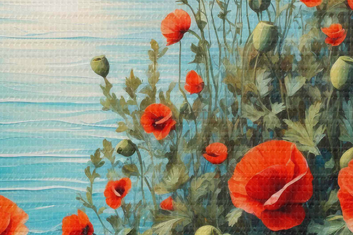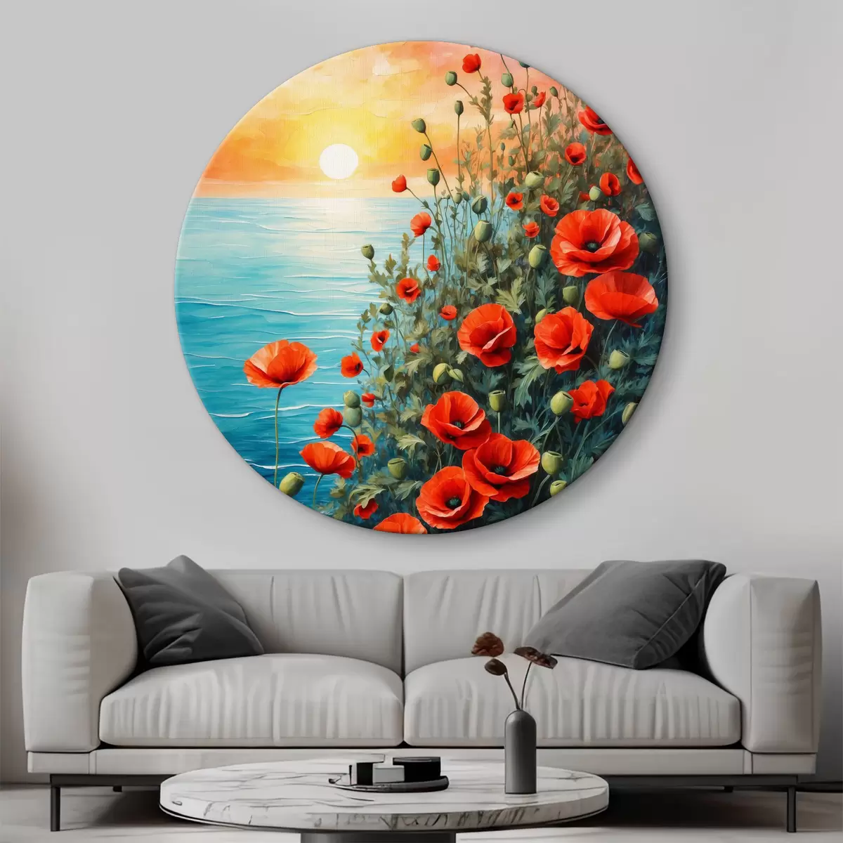 Runde Wandbilder Blühende Mohnblumen vor dem Hintergrund des Meeres Nr r40637