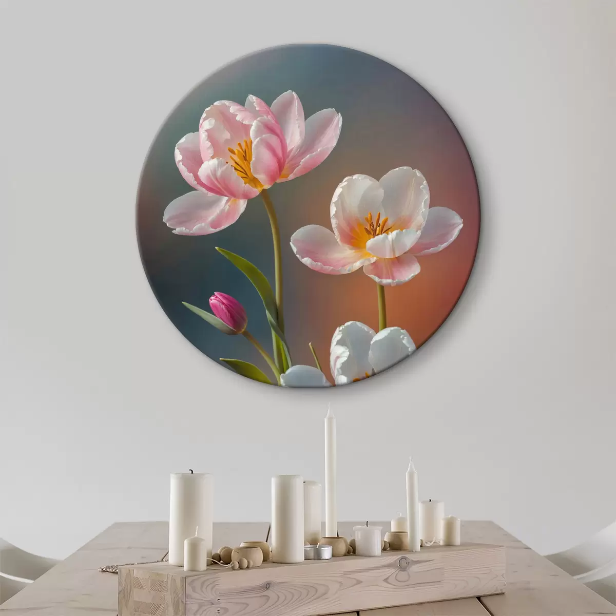 Runde Wandbilder Rosa Blumen auf unscharfem Hintergrund r40644
