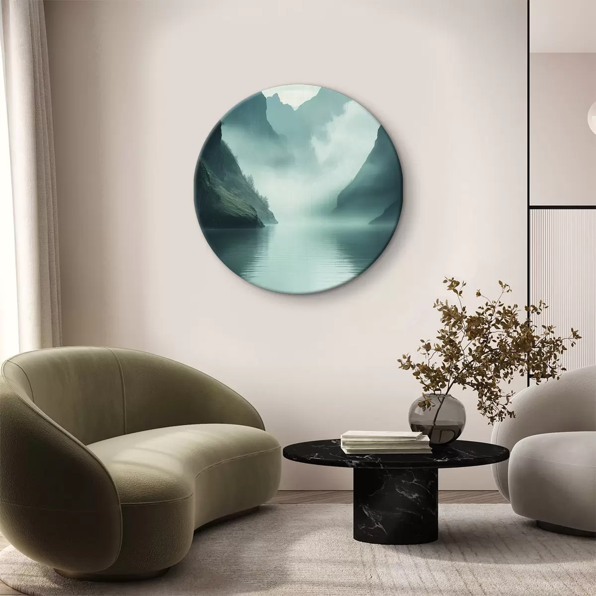 Runde Wandbilder Mysteriöse Berge im Nebel r40653