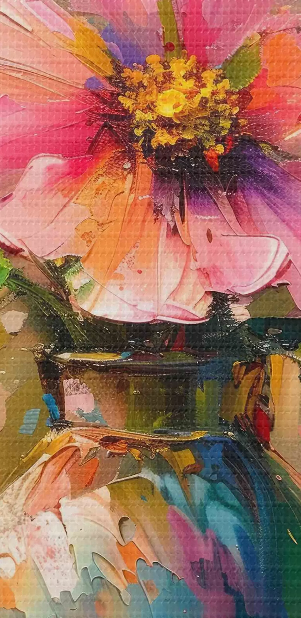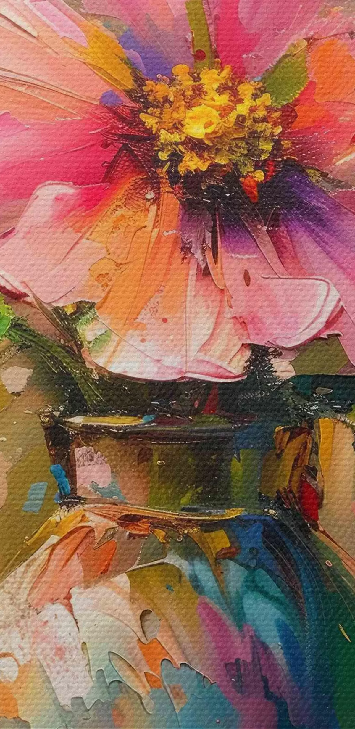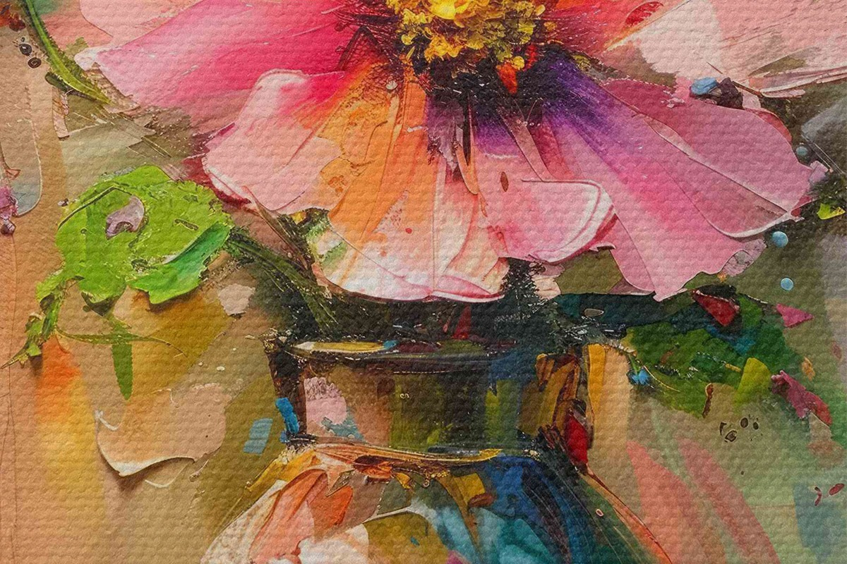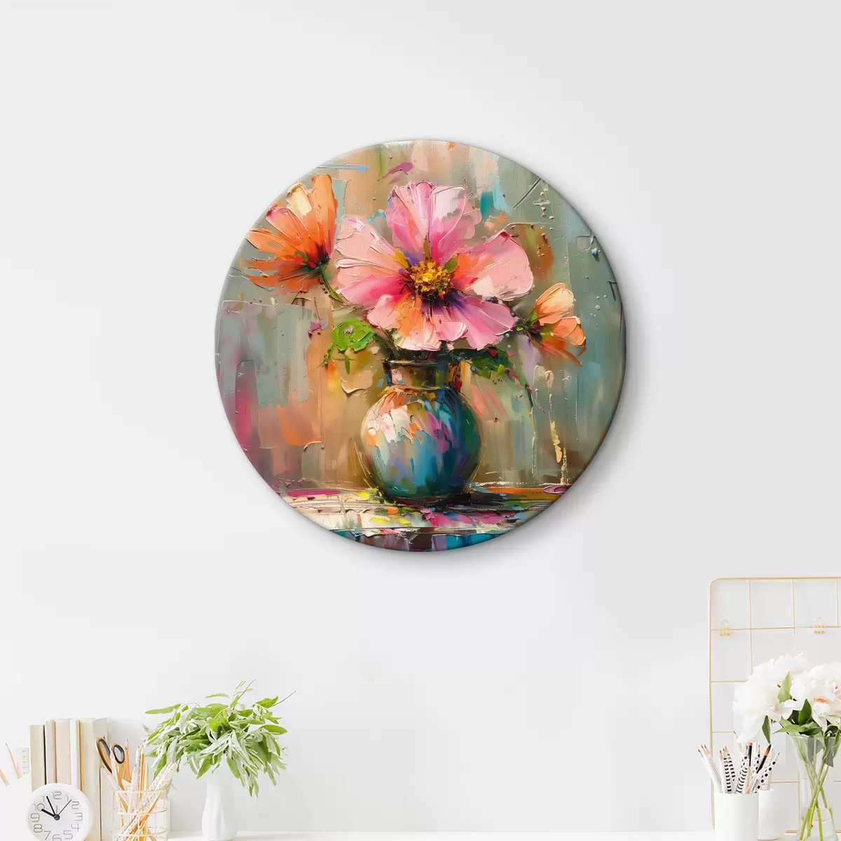 Runde Wandbilder Bunte Blume in einer Vase mit großen Pinselstrichen aus Ölfarbe Nr r40664