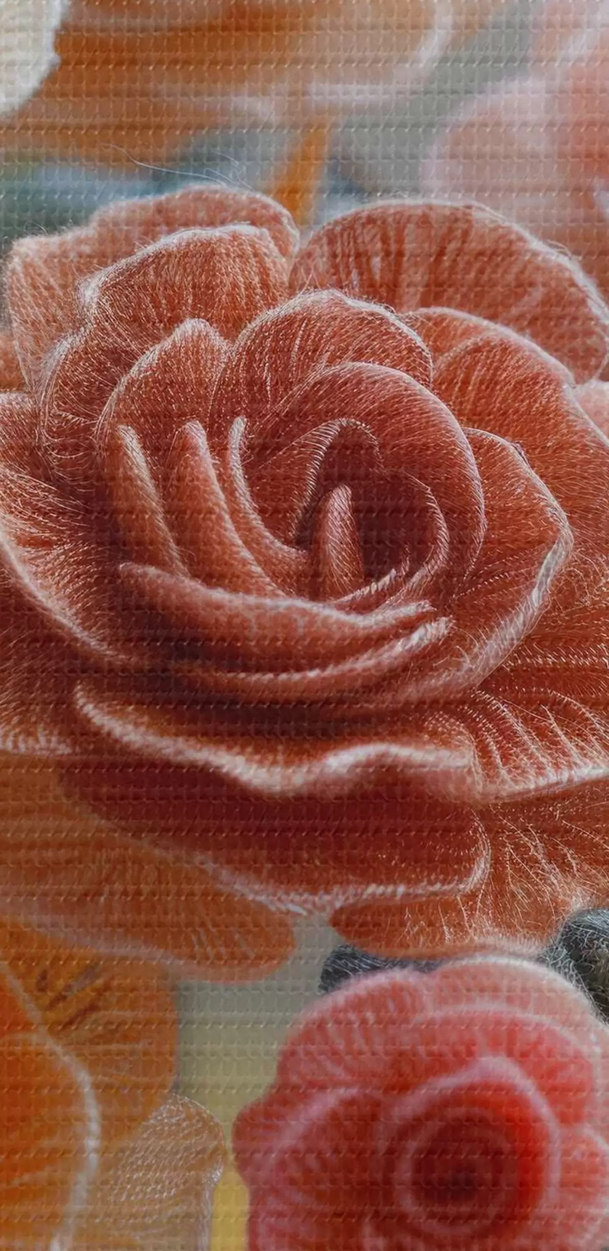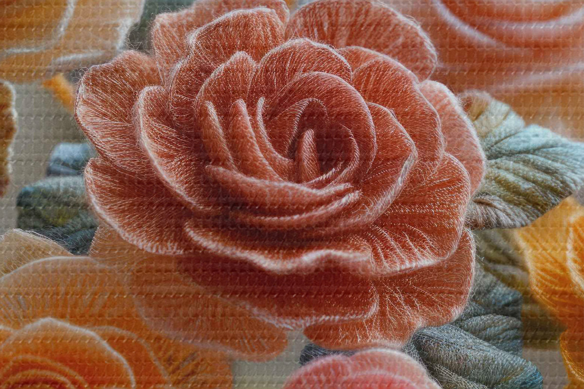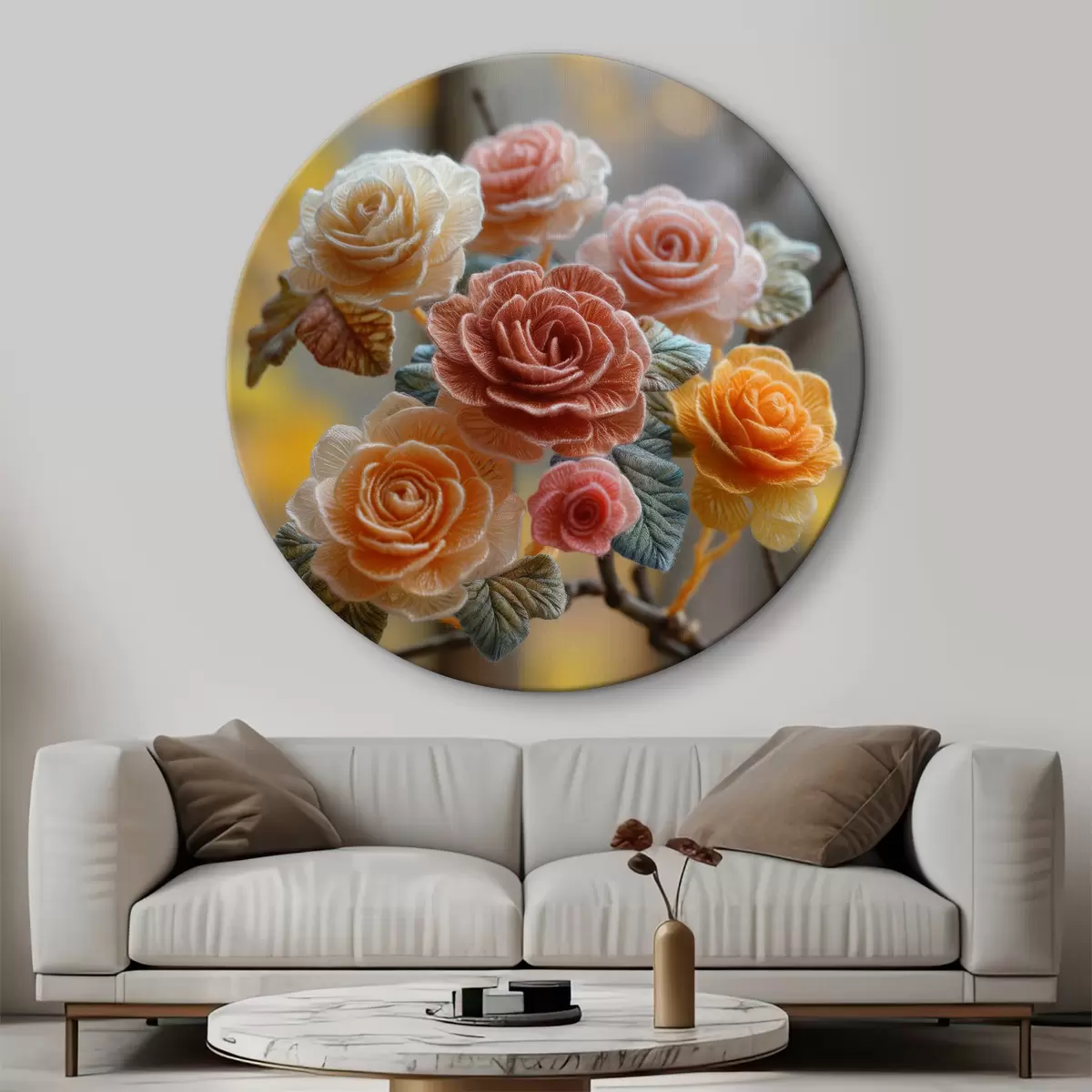 Runde Wandbilder Ein flauschig gestrickter Rosenstrauß im handgefertigten Stil r40673