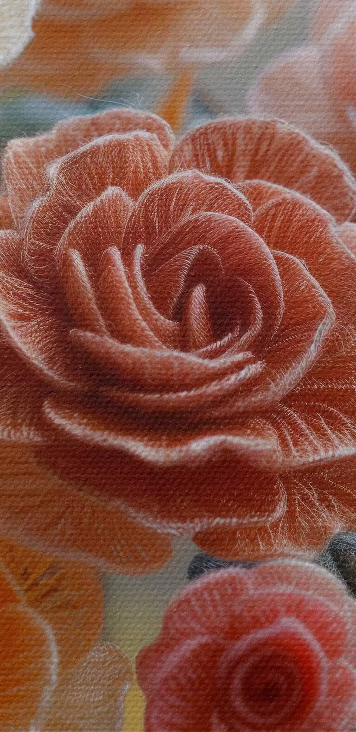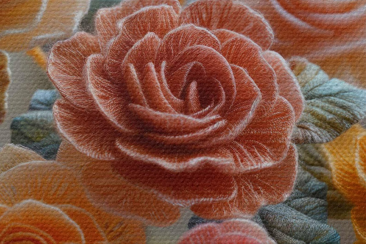 Das feine Fadengeflecht auf dieser Leinwand ähnelt der Oberfläche von professionellen Künstlerleinwänden.