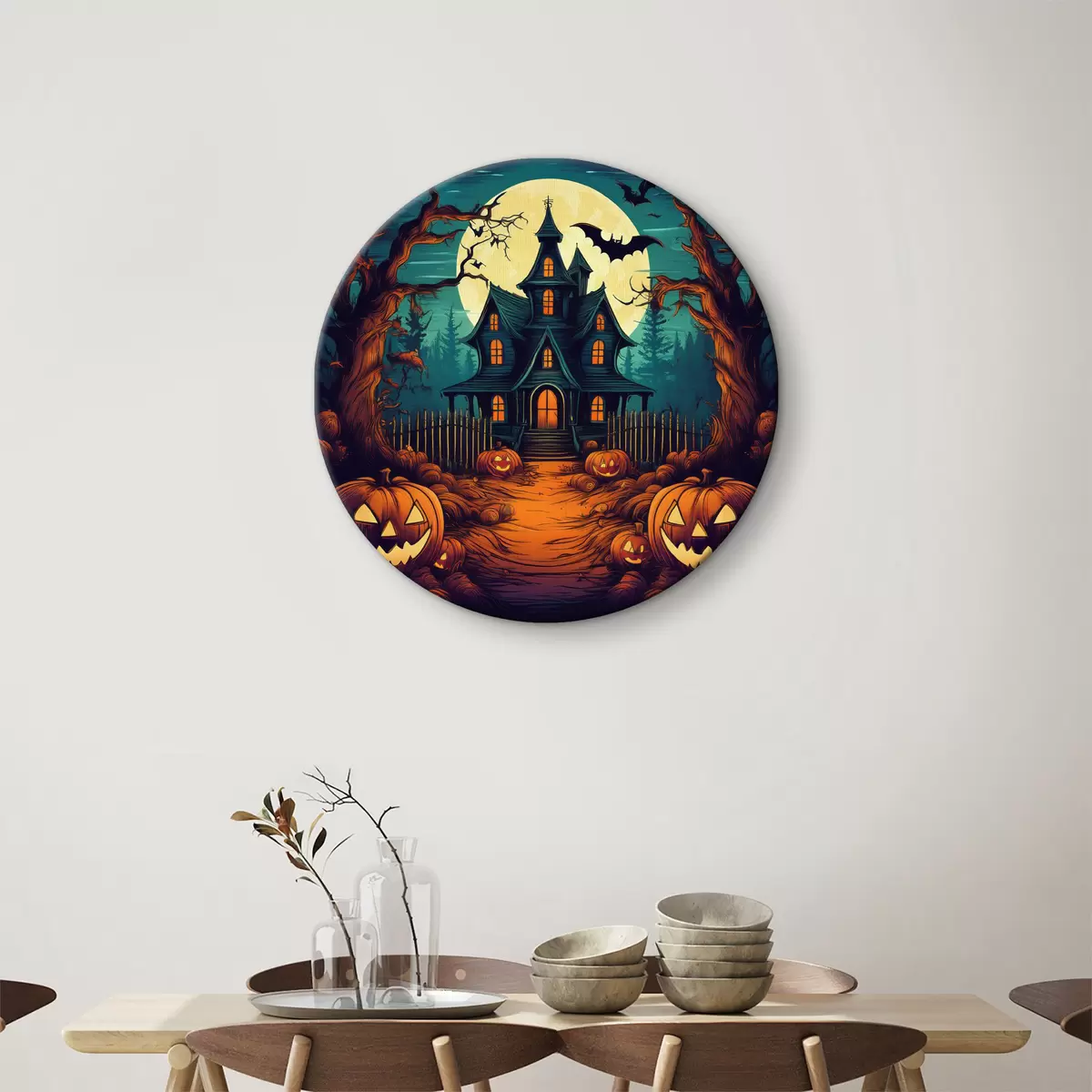 Runde Wandbilder Halloween, Schloss im Wald, Horror, Fledermäuse r40715