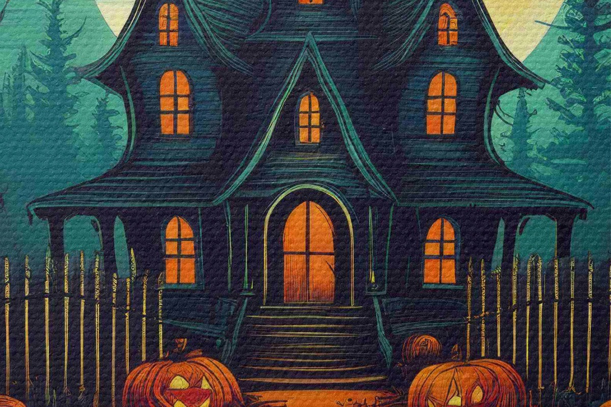 Runde Wandbilder Halloween, Schloss im Wald, Horror, Fledermäuse Nr r40715