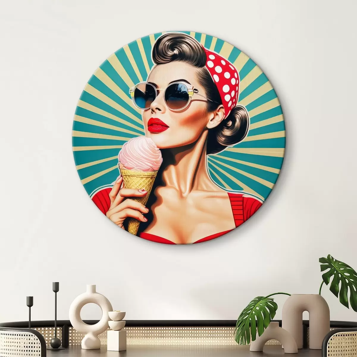 Runde Wandbilder mädchen mit Eiscreme, Pop-Art, Pin-up, Retro Nr r40718