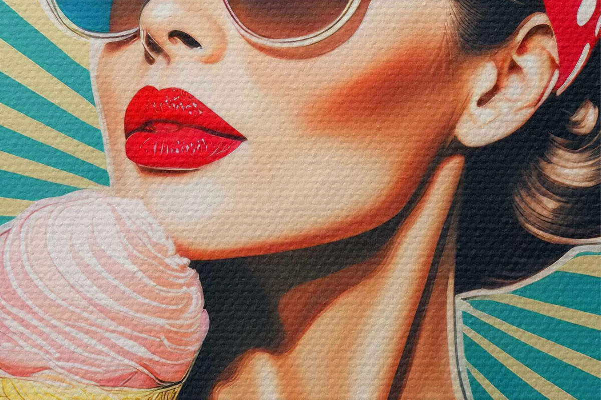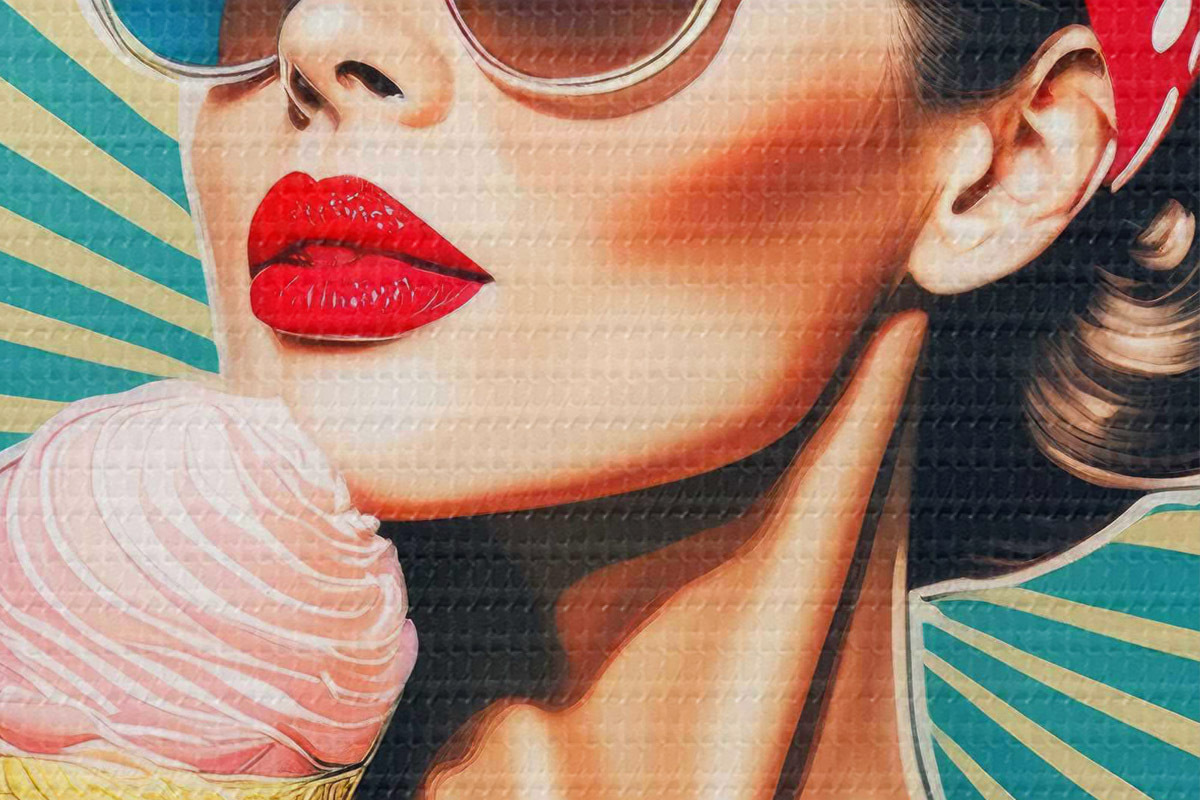 Runde Wandbilder mädchen mit Eiscreme, Pop-Art, Pin-up, Retro r40718