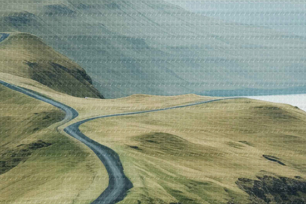 Runde Wandbilder Minimalistische Straßenlandschaft auf den Färöer Inseln am Meer Nr r40726