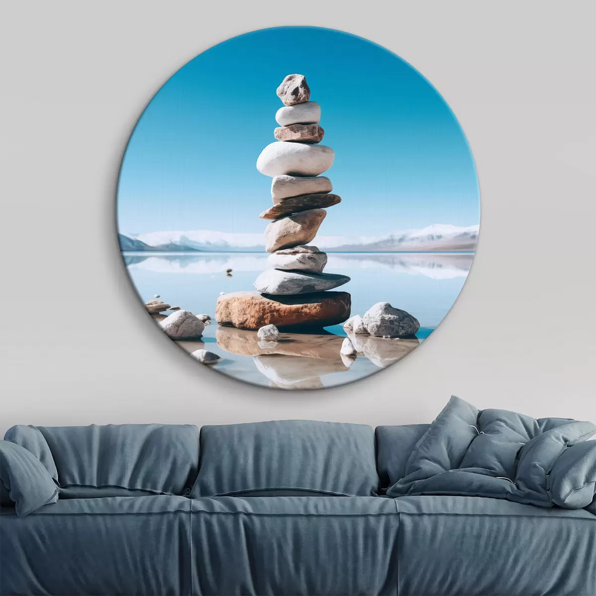 Runde Wandbilder Steinstruktur auf dem See Nr r40742