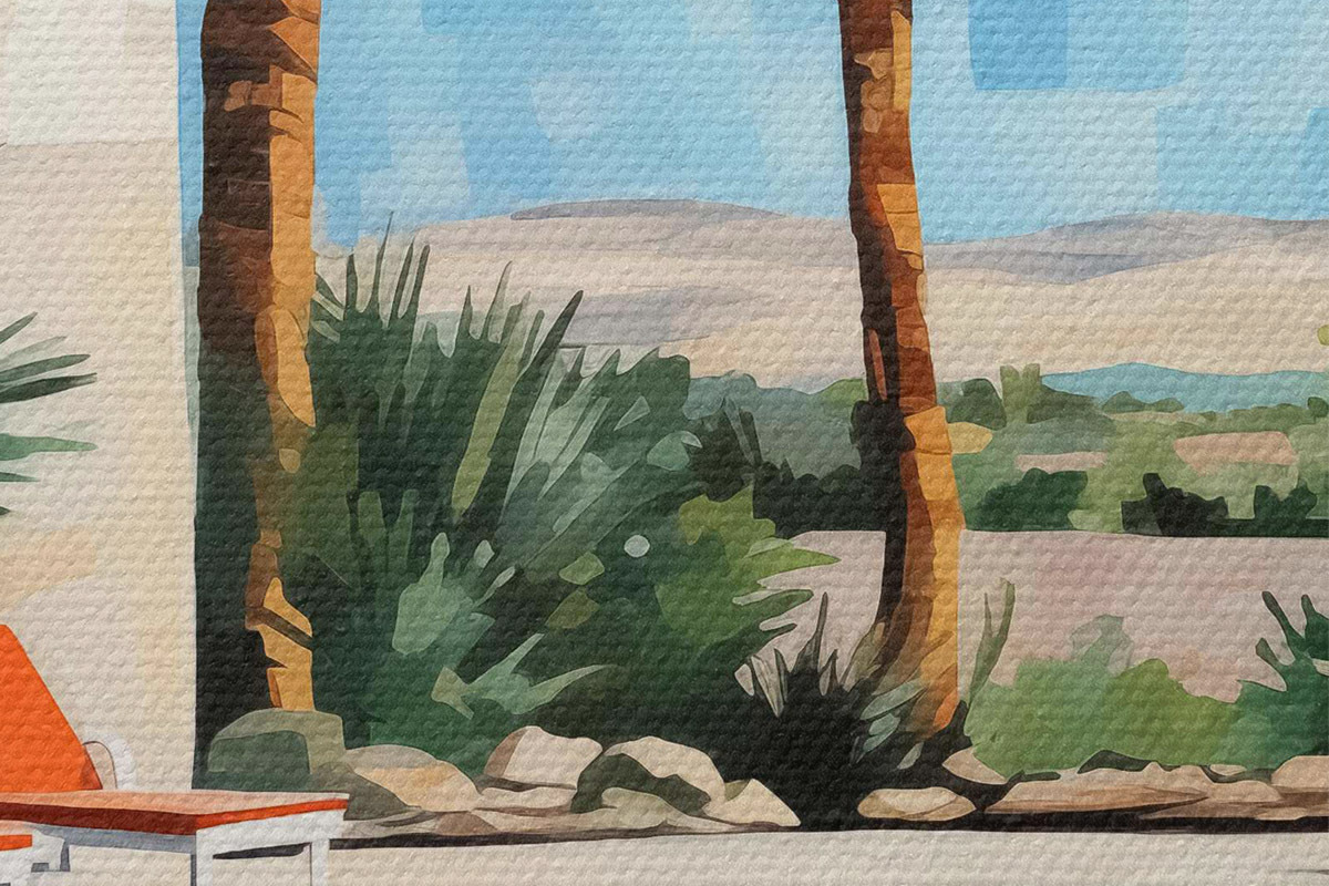 Runde Wandbilder Palmen in der Nähe des Hotels mit einem Schwimmbad in der Nähe der Felsen, blau, grün, rot Farben r40748