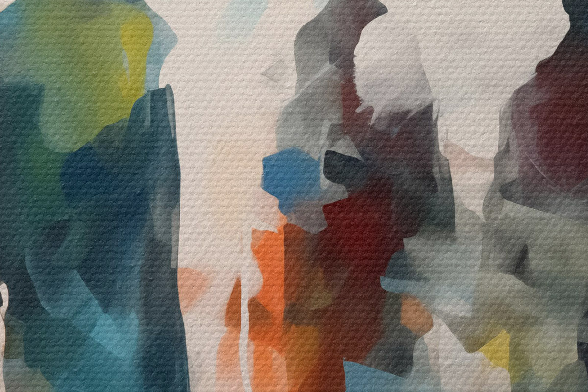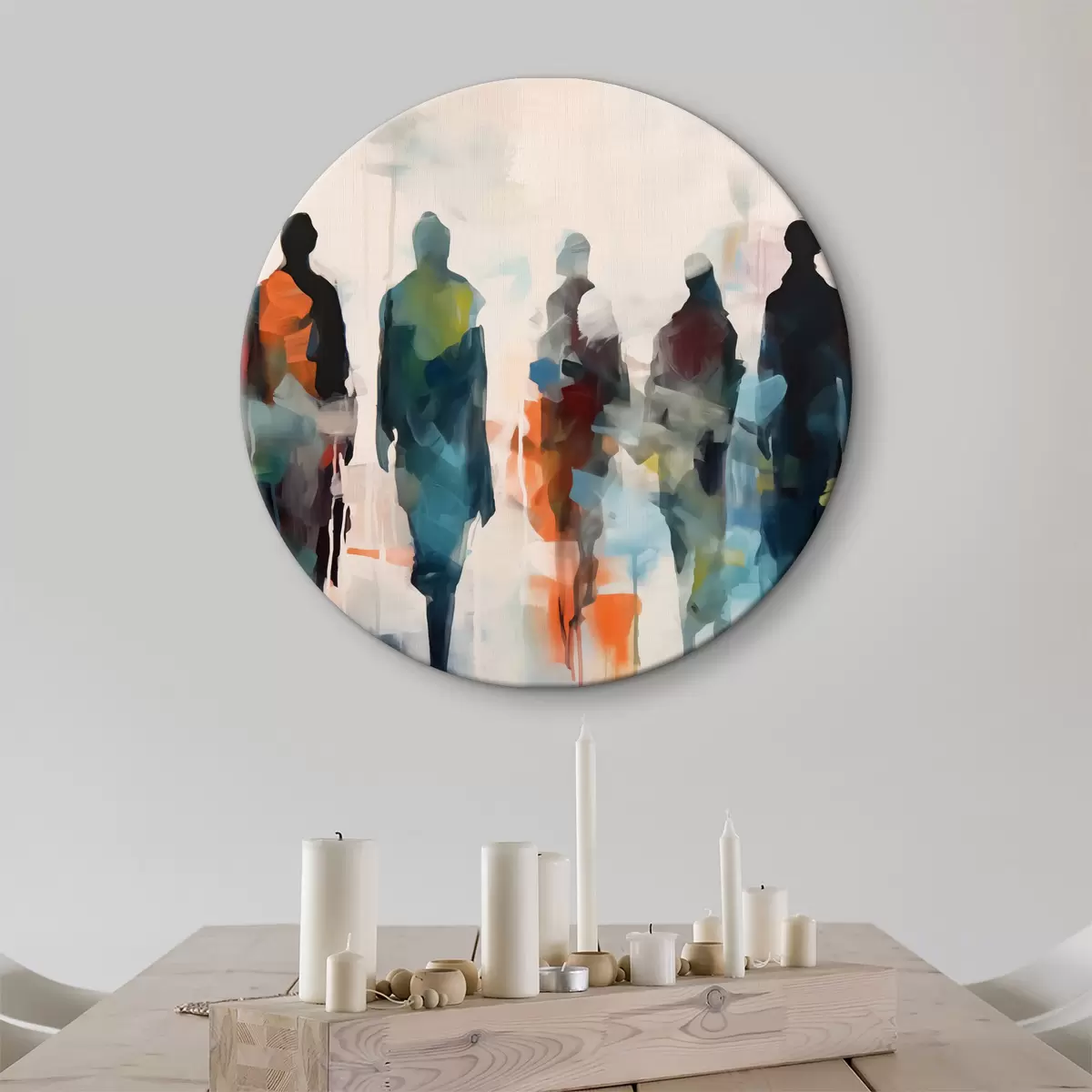 Runde Wandbilder Silhouetten einer Gruppe von abstrakten Menschen, Nachahmung von Pinselstrichen r40752