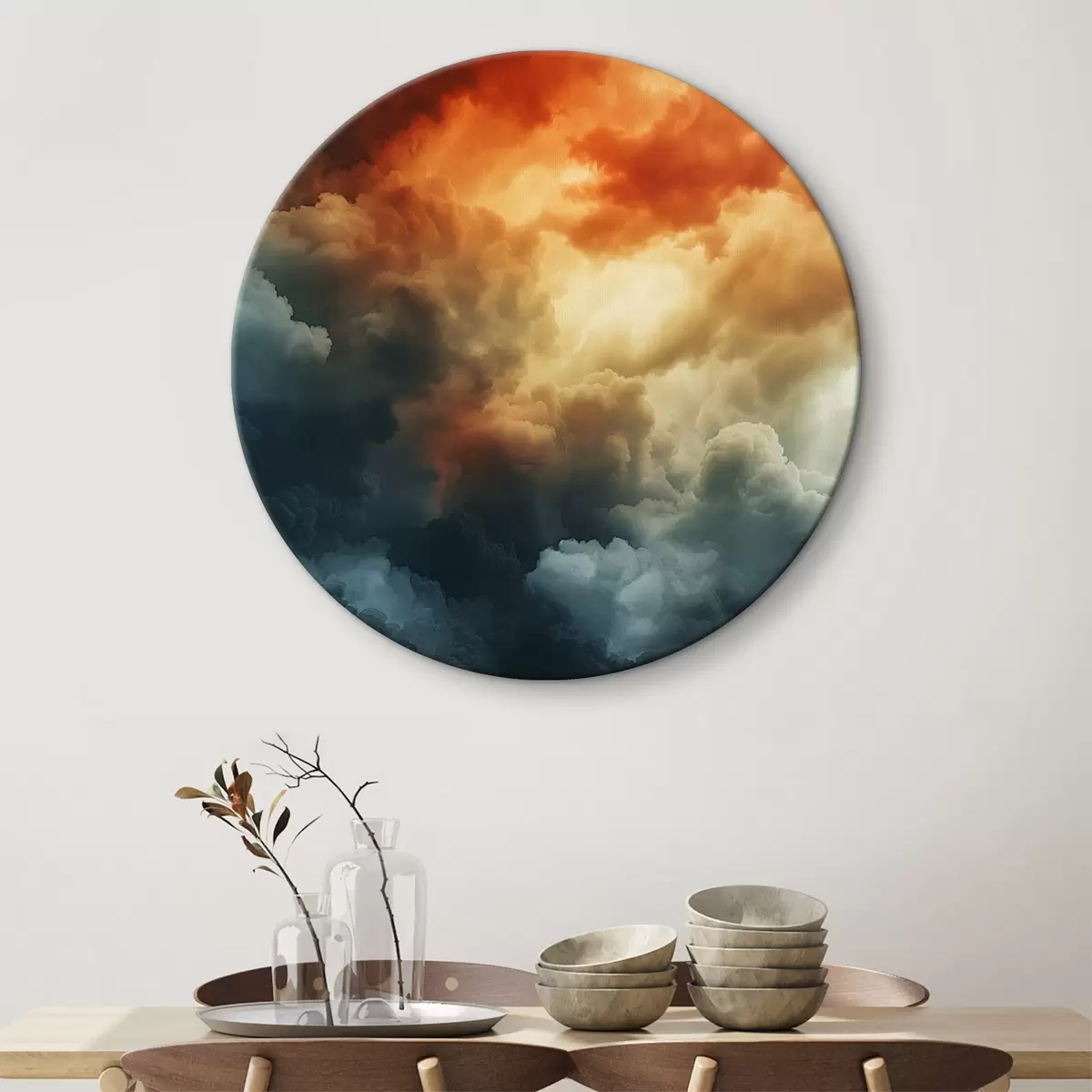 Runde Wandbilder Wolken, dunkelblau, orange, antik r40784
