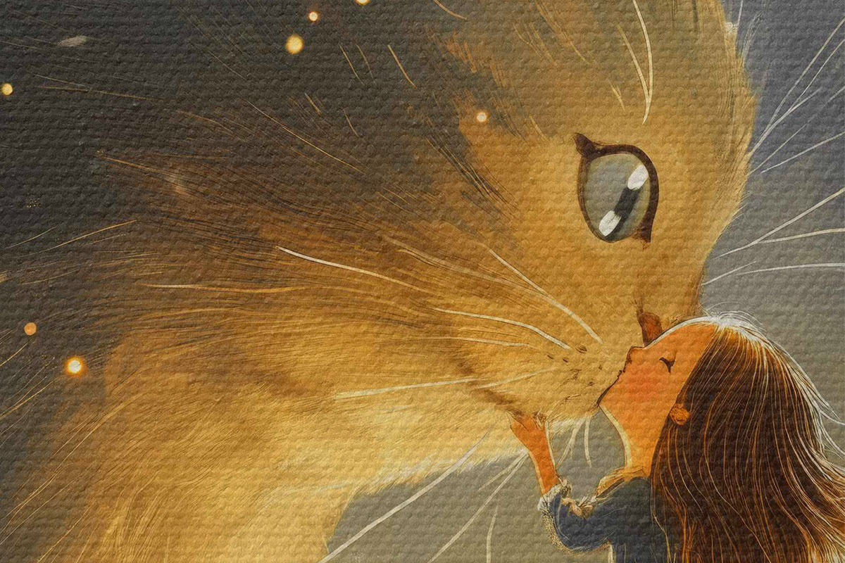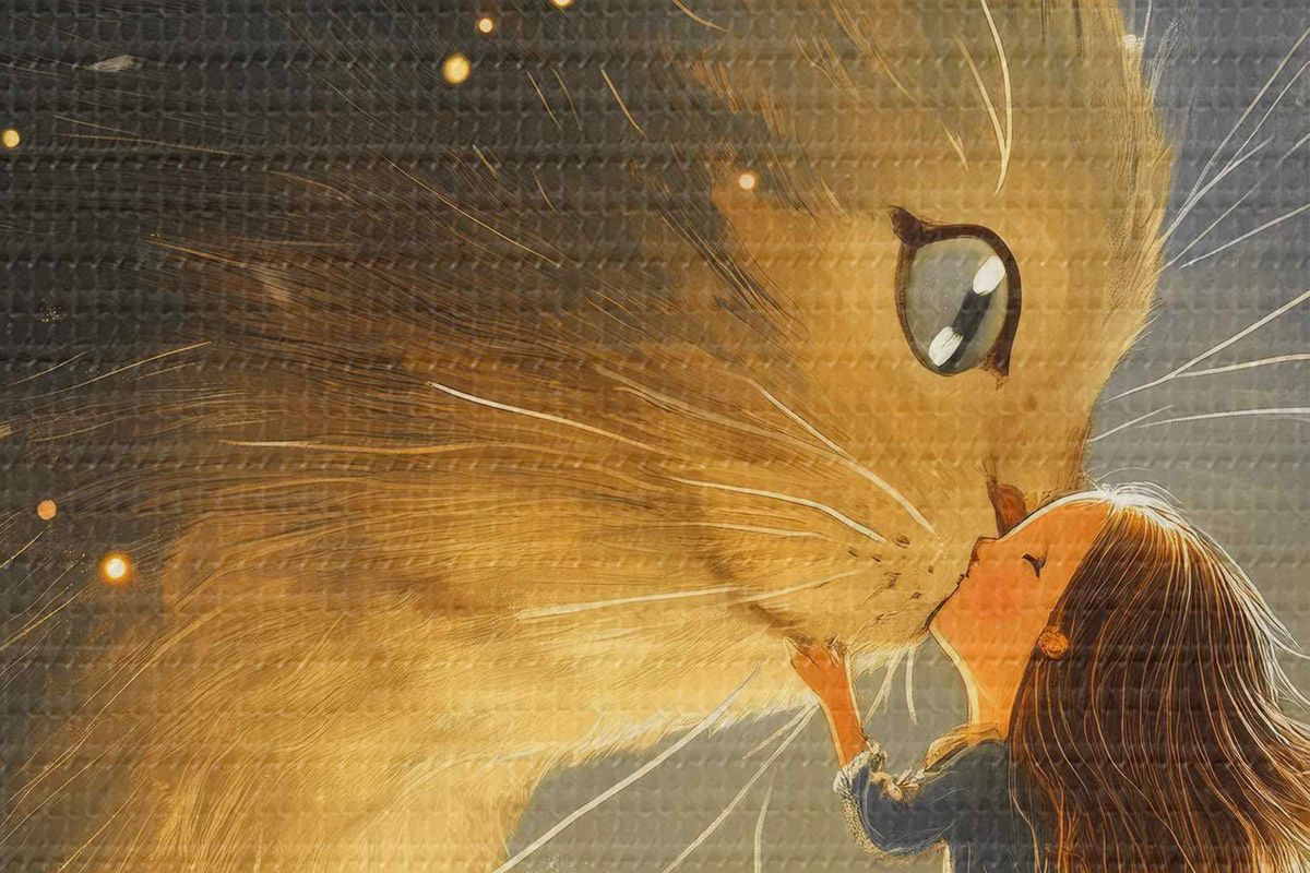 Runde Wandbilder Das Mädchen küsst die Katze Nr r40825